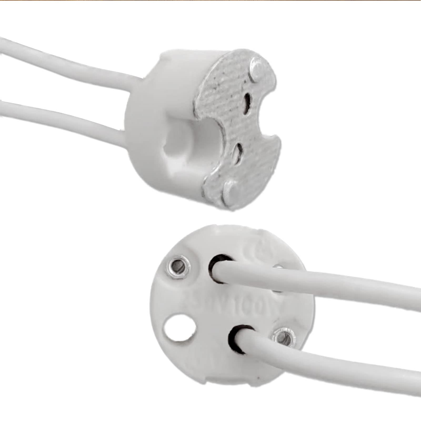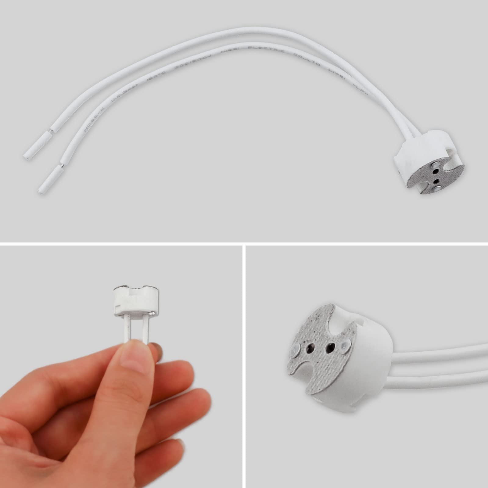 Akynite 10er-Set GU5.3/MR16, GU4/MR11, G4, G6.35 Keramikfassung mit 14cm Silikonkabel, 12V-250V, 2A max. 100W, für LED Spots und Halogenlampen, Weiss