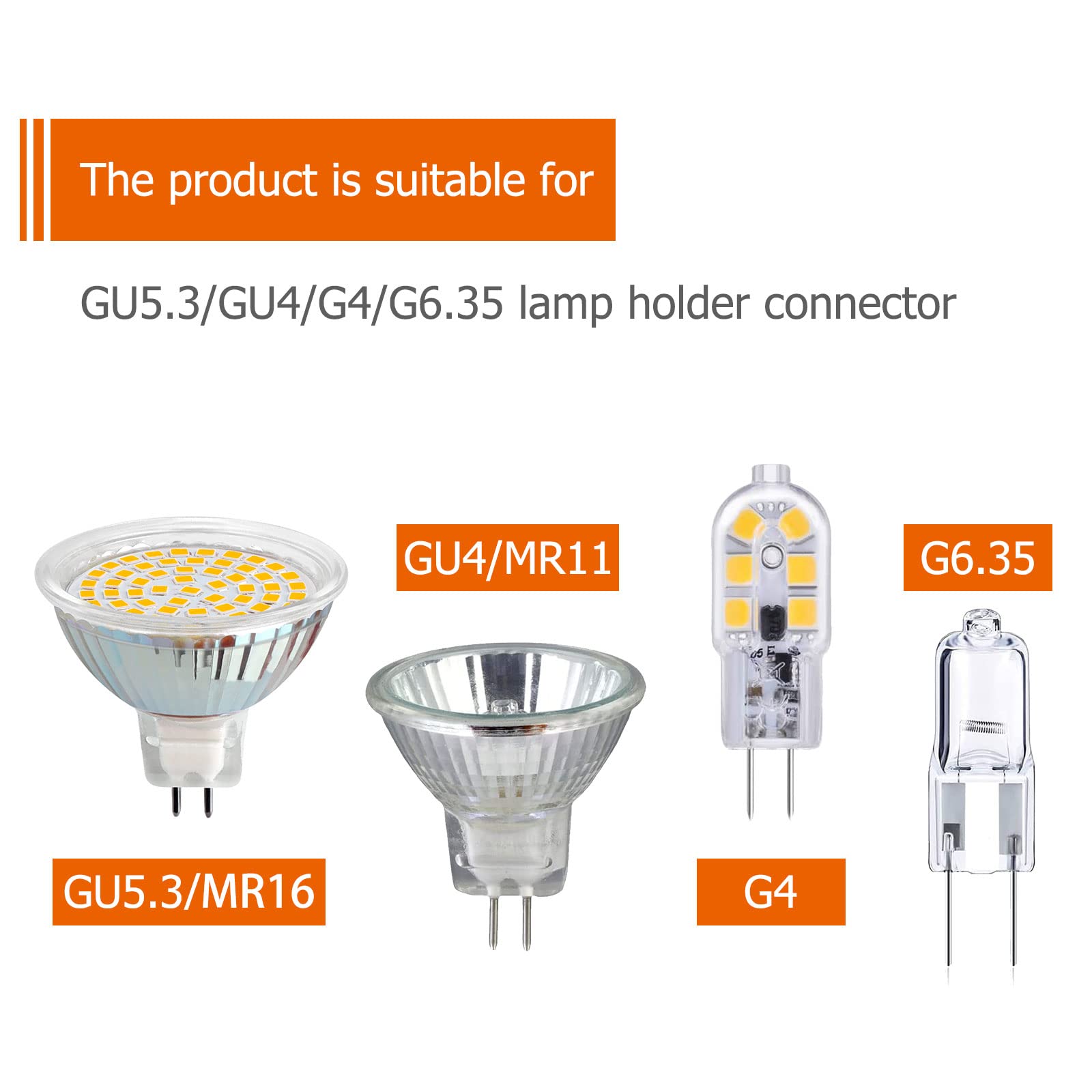 • ★【Kompatibel】: Diese Keramikfassung ist geeignet für LED spots und Halogenlampe mit sockel GU5.3/MR16, GU4/MR11, G4, G6.35, max. 100W.
