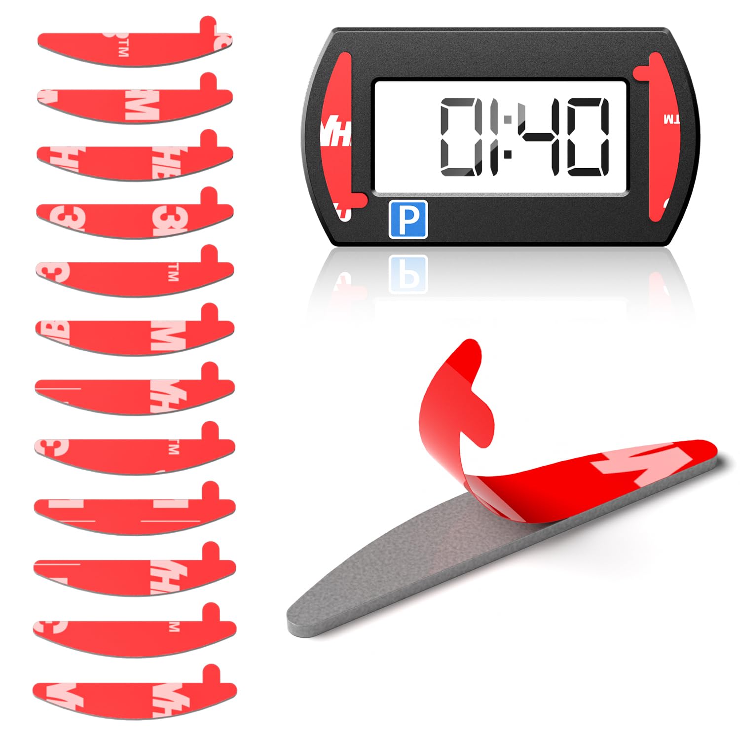 ALAFLY [12 Stück Ersatz Klebepads kompatibel mit Needit Park Mini Parkscheibe, Doppelseitige 3M Hitzebeständig Starke VHB Aufkleber Klebeband Parkuhr Klebepad Set für Windschutzscheibe