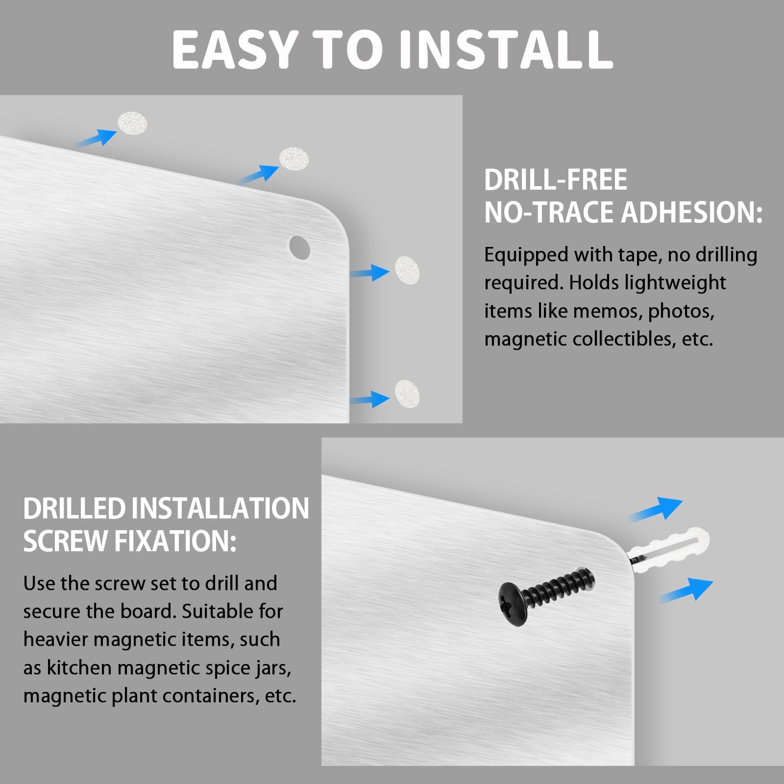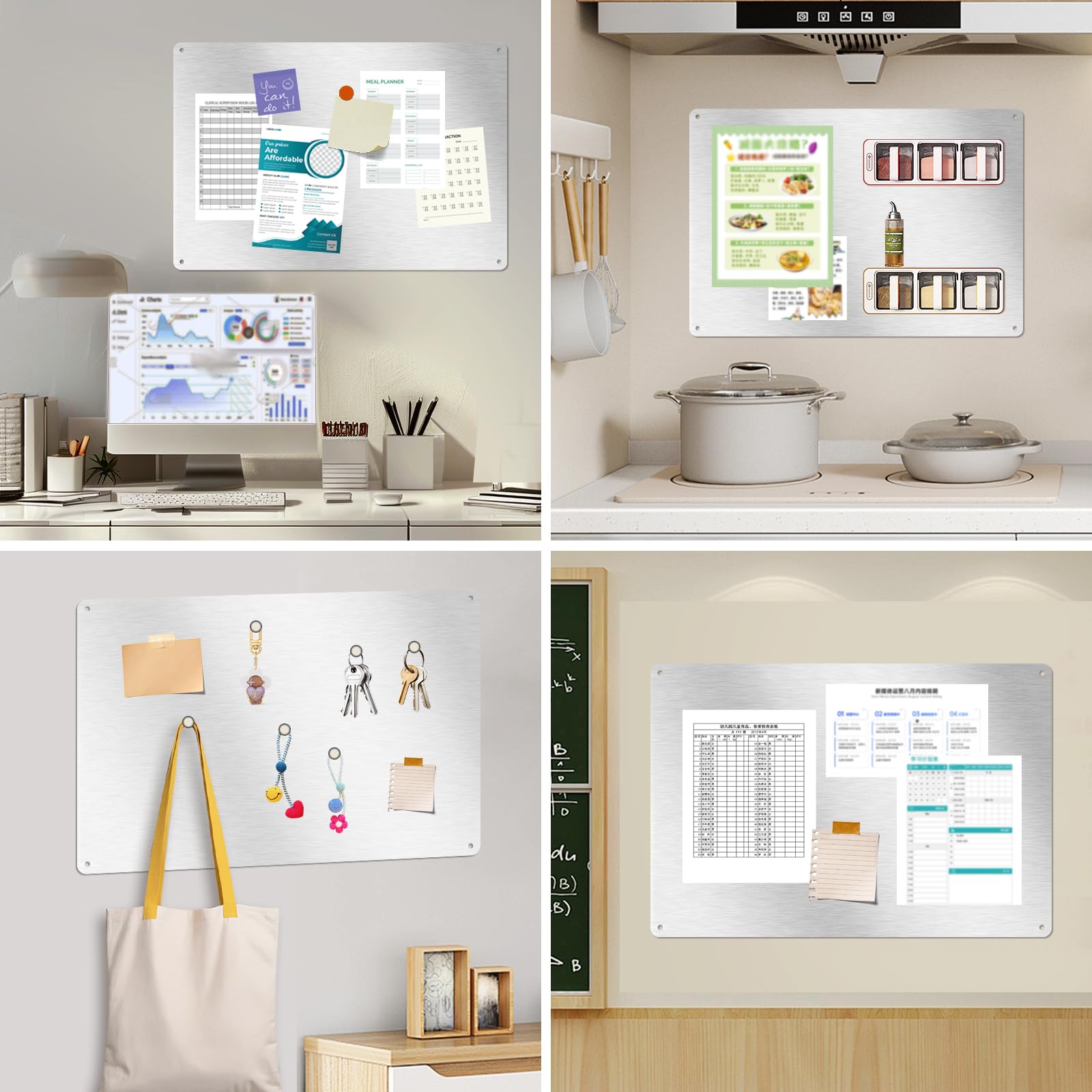 • Upgrade für Küche und Büro: Peppen Sie Ihren Raum mit diesem modernen Must-Have auf! Das minimalistische Finish aus gebürstetem Metall fügt sich nahtlos in ein Landhaus-, Industrie- oder skandinavisches Dekor ein und kann auch als Memoboard oder dekorativer Rahmen für Fotos/Postkarten verwendet werden.