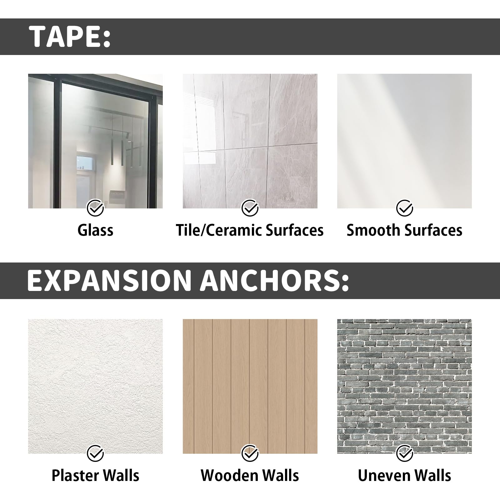 • Vielseitige Befestigungsmöglichkeiten: Enthält 12 Expansionsschrauben, die nur für raue Wände geeignet sind, und 12 runde Klebepads, die für glatte Oberflächen geeignet sind. Und sie sind einfach zu installieren, ideal für Küchen, Büros oder Klassenzimmer.
