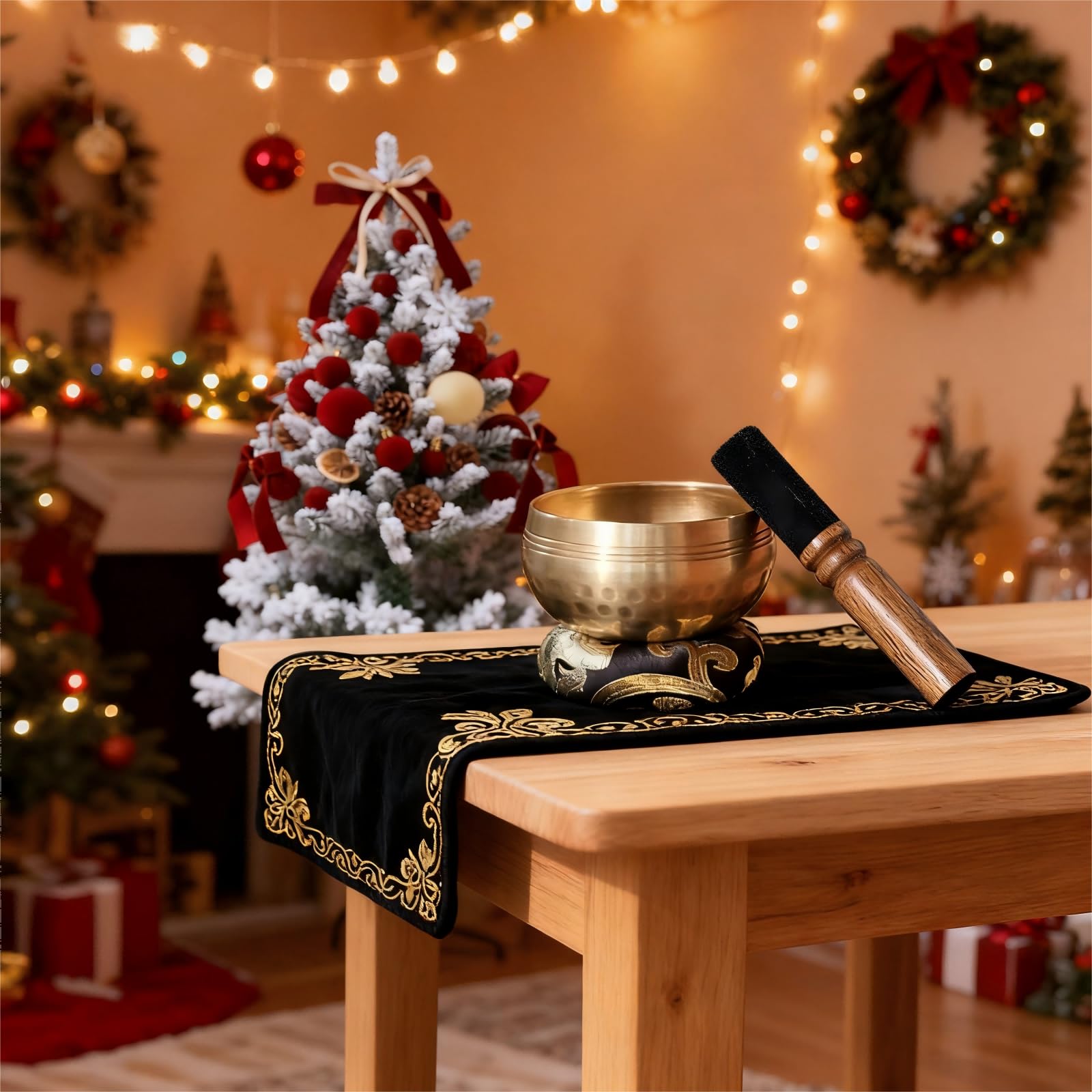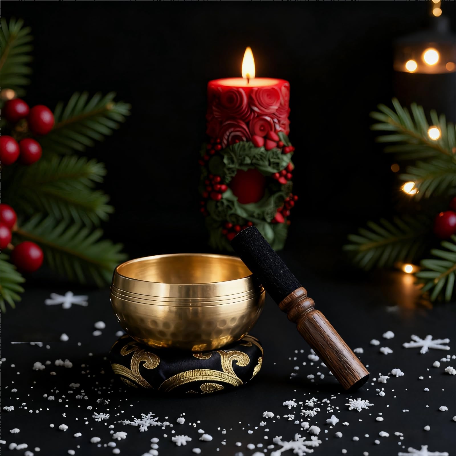 alasemo Tibetische Klangschalen Set Ø8cm, Klangschale klein für Yoga Meditation und Entspannung, Hand gehämmert Messing Singing Bowl mit Holz Klöppel Klangschalenkissen und Aufbewahrungsbeutel