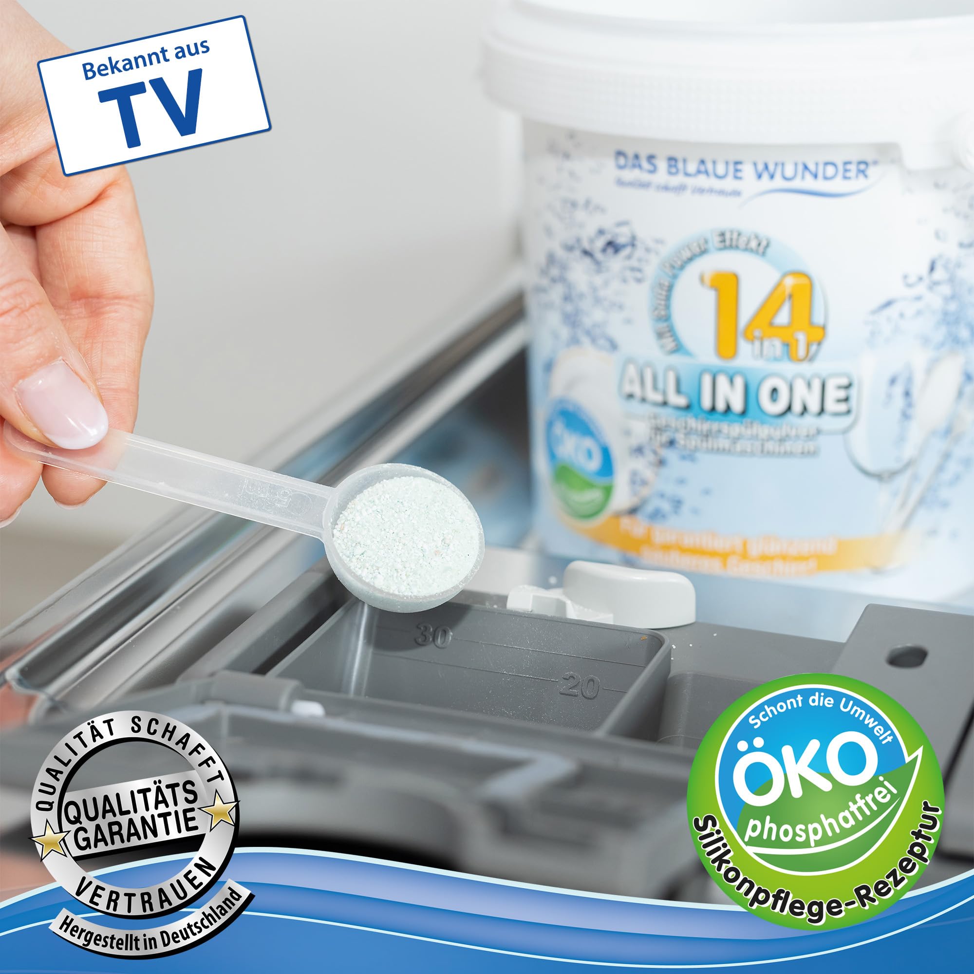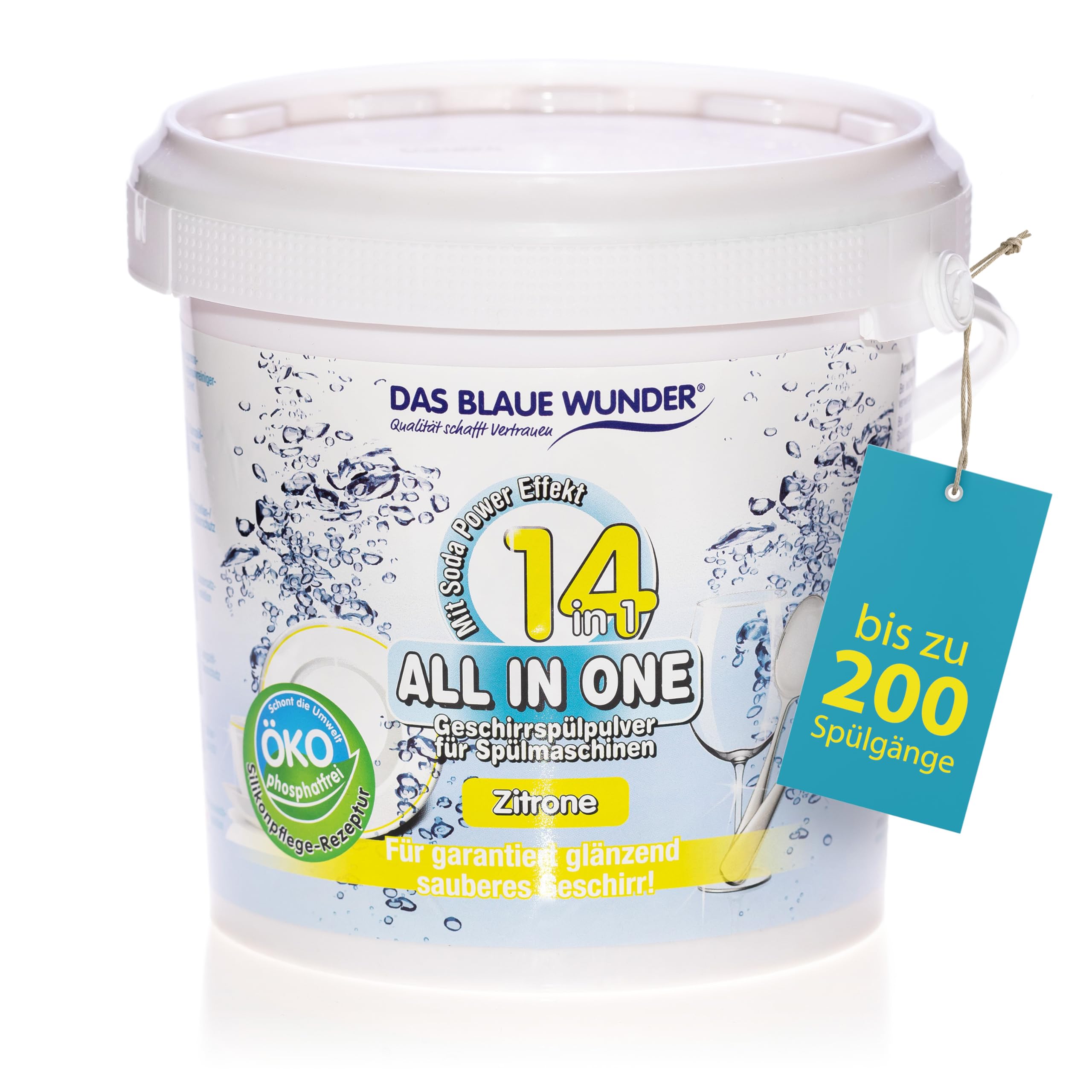 All In One Geschirrspülpulver Spülmaschinenpulver | mit Niedrig-Temperatur-Aktivator | Power Entkruster | Maschinenpfleger | Silber-Schutz | phosphatfrei | Das blaue Wunder (1.000 g Zitrone)