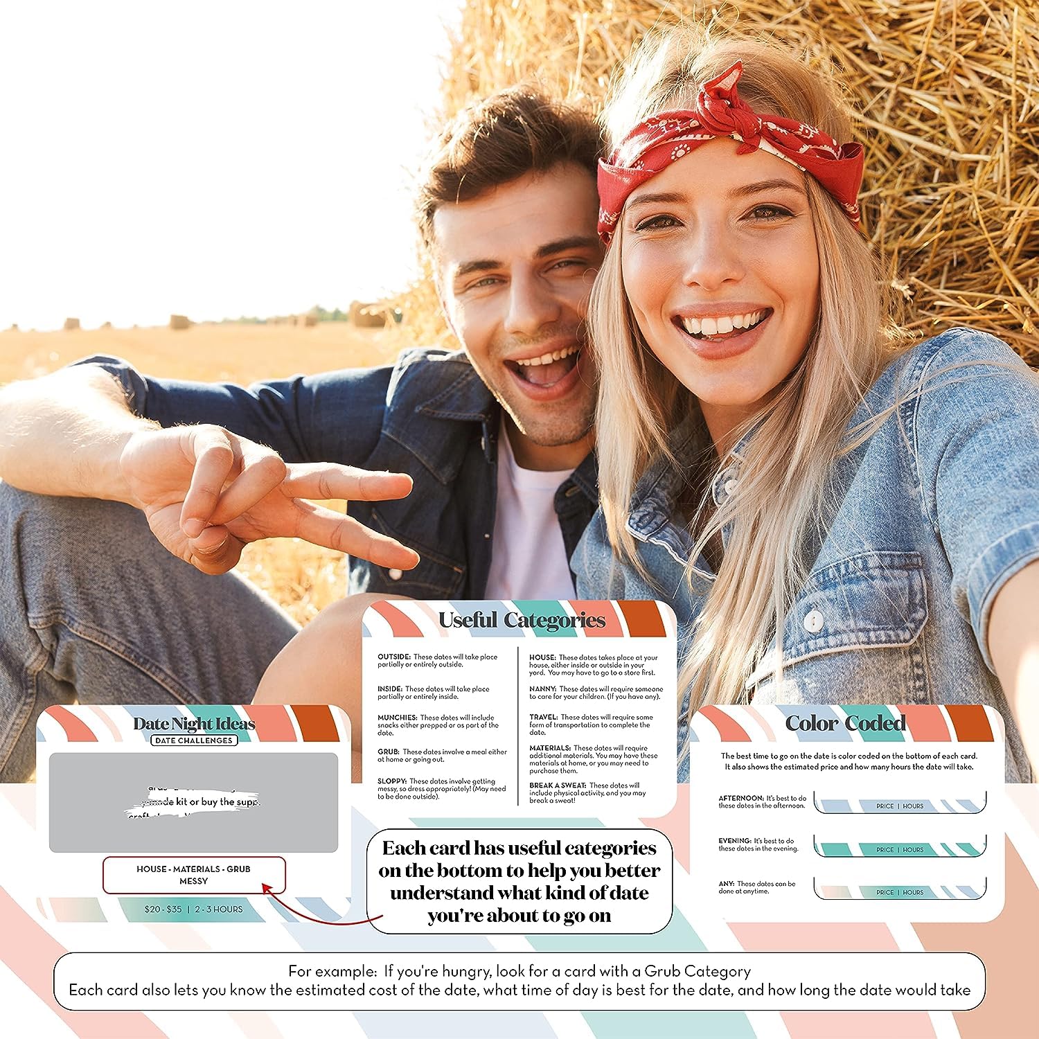 • Für wen ist es? Dies ist eines der besten Paar-Herausforderungsspiele, die es gibt. Egal, ob ihr gerade erst angefangen habt, euch zu treffen, oder schon seit über 10 Jahren in einer Beziehung seid oder verheiratet – die Date-Ideen in diesem Kartendeck sind einzigartig und bieten ein spassiges Date, das ihr noch nie ausprobiert habt. Verliebe dich wieder in deinen Partner mit diesen Date-Night-Karten. Es ist ein perfektes Jubiläumsgeschenk für Paare.