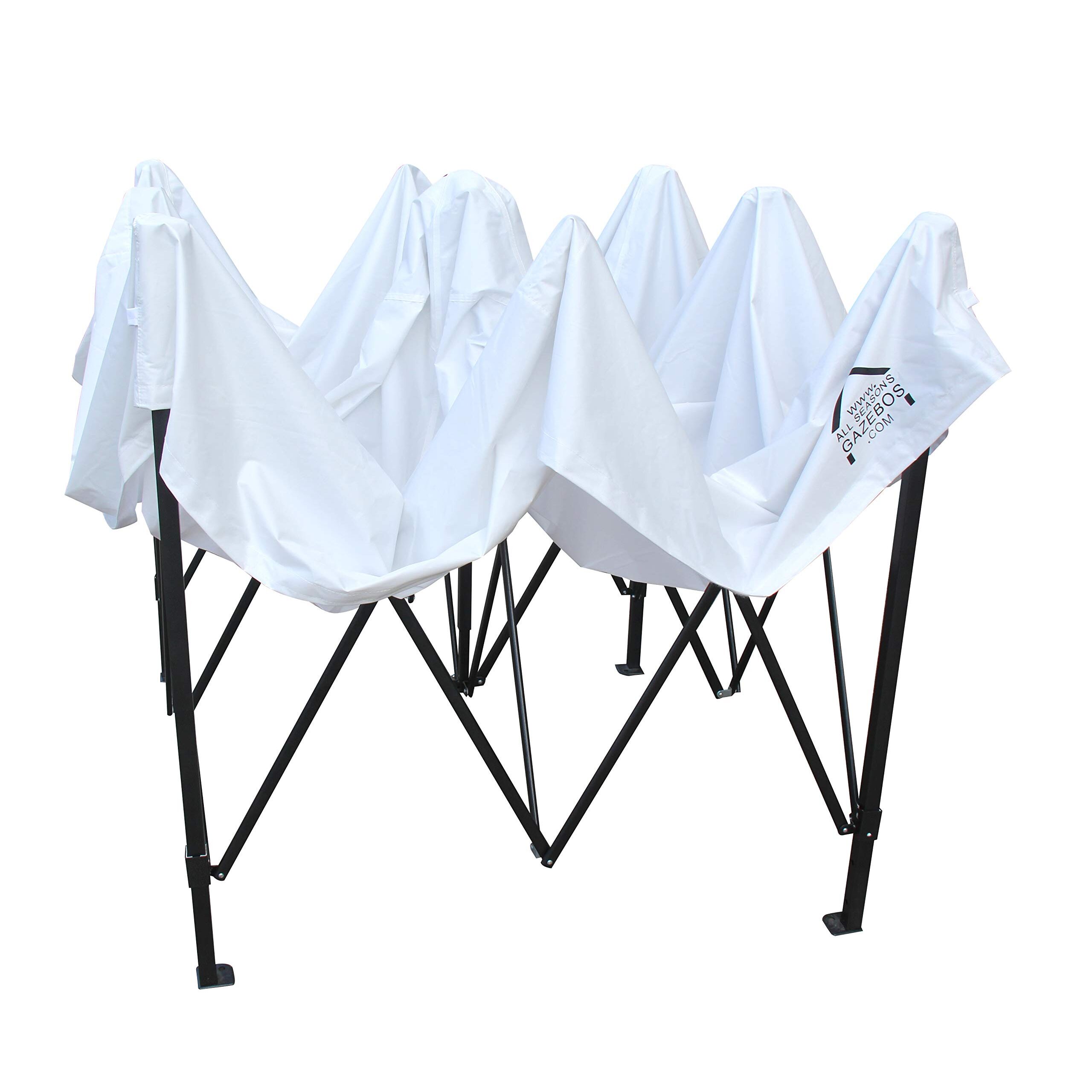 All Seasons Gazebos Schwer Pflicht Vollständig Wasserdicht Pop Up Gartenlaube mit Accessoire Packen Verfügt über ein 260 g/m² PVC-beschichtetes Polyesterdach und 210D PU-beschichtete Seitenwände. Dieser robuste Pavillon kann ohne Seitenwände als Strand-Cabana oder Picknickunterstand verwendet werden. Der pulverbeschichtete Stahlrahmen lässt sich in 2 Minuten mit 24 winddichten Stützstreben aufbauen. Die Tragetasche mit Rollen fördert die volle Tragbarkeit und schützt Ihren Pavillon während des Transports und der Lagerung. Ideal für Gras-, Sand- und Bodenflächen mit Beingewichtssäcken, Heringen und Abspannleinen. Dieser vielseitige Pavillon eignet sich für Messen, Handwerksmessen, Hochzeiten und Picknicks. Massnahmen 2.5 messgerät länge von 2.5 messgerät weite. Kommt rein weiss farbe.