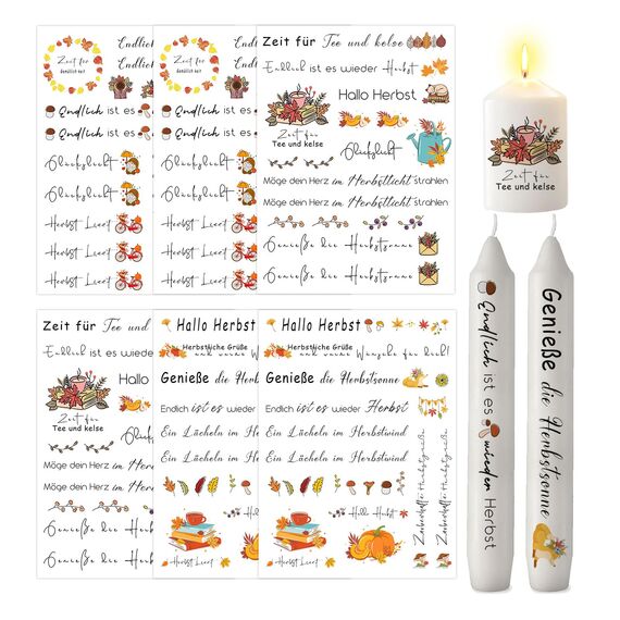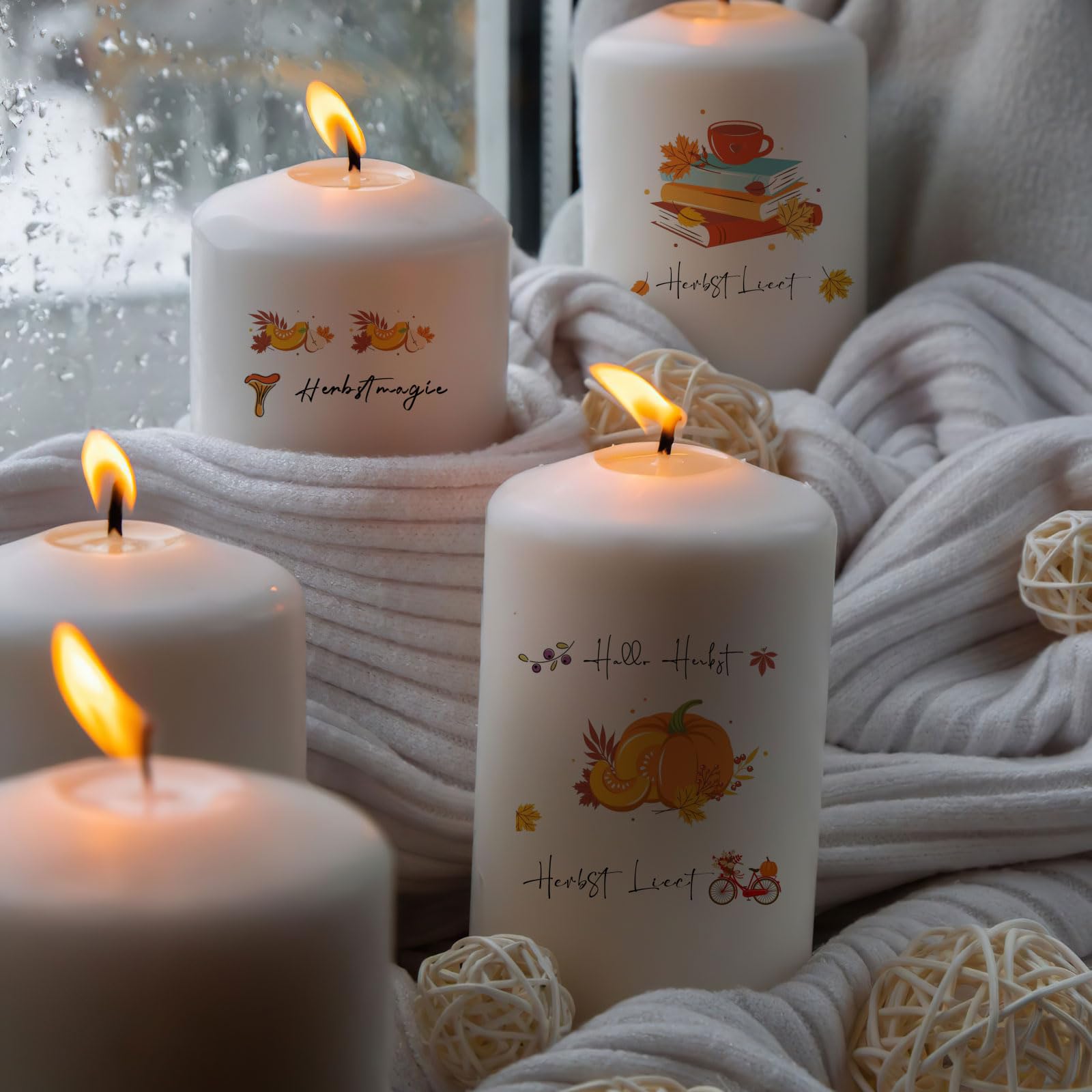 Kerzentattoos Herbst, Herbst Kerzen, Rub On Sticker Herbst, Herbst Dekoration, Sticker Herbstdeko für Kinder zum Basteln, DIY Kerzen Geschenk, Kerzen Dekorieren