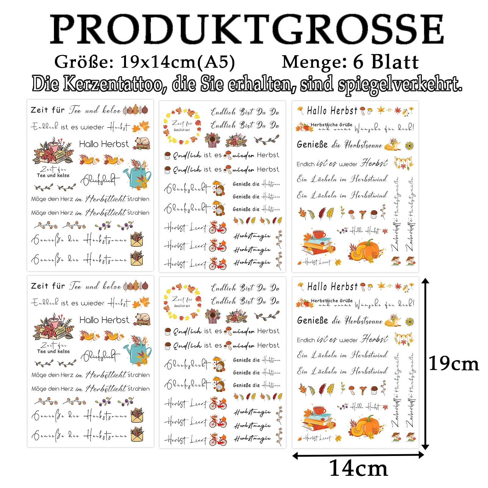 ALLAVA 6 Blatt Kerzentattoos Herbst, Herbst Kerzen, Rub On Sticker Herbst, Herbst Dekoration, Sticker Herbstdeko für Kinder zum Basteln, DIY Kerzen Geschenk, Kerzen Dekorieren (19x14, Herbst C)