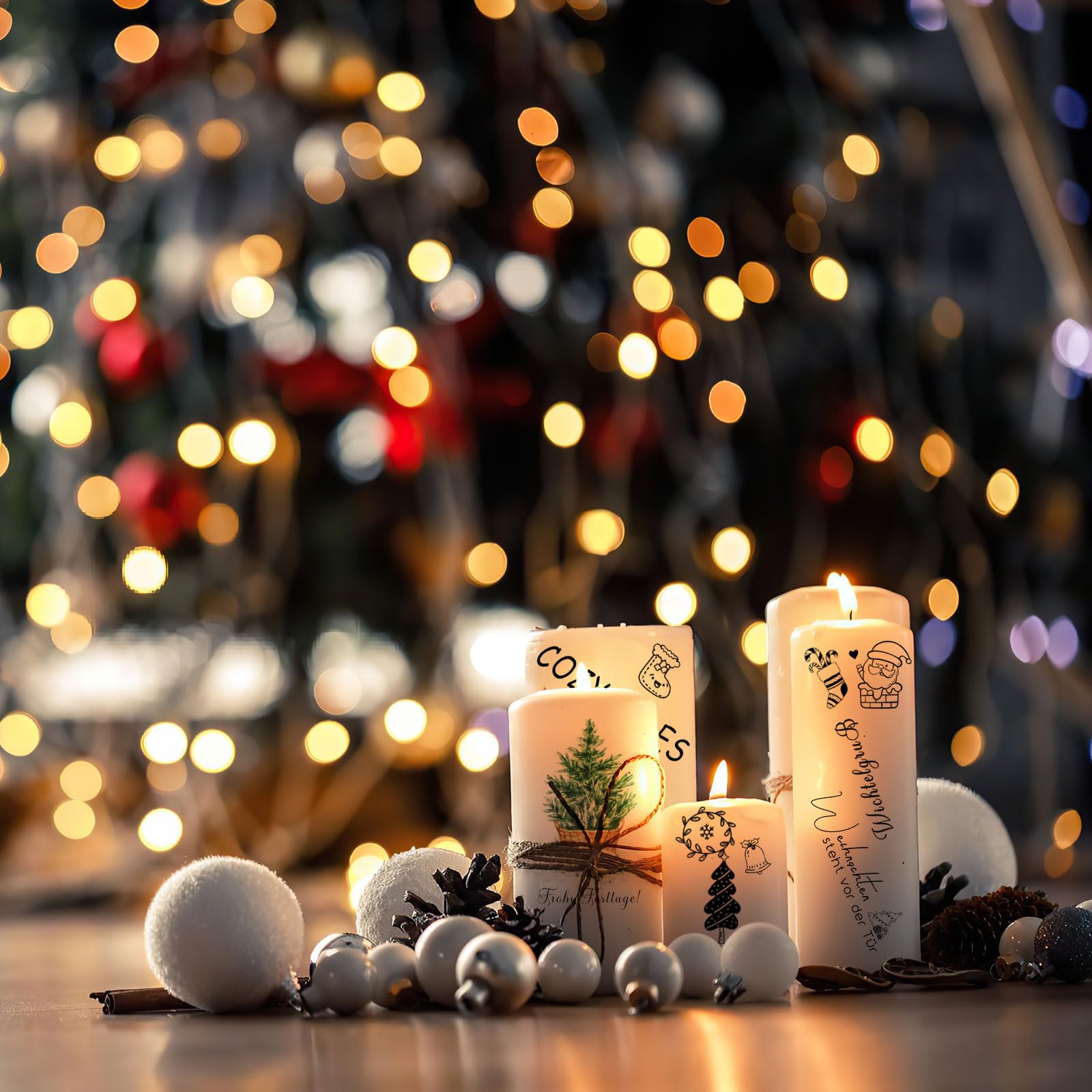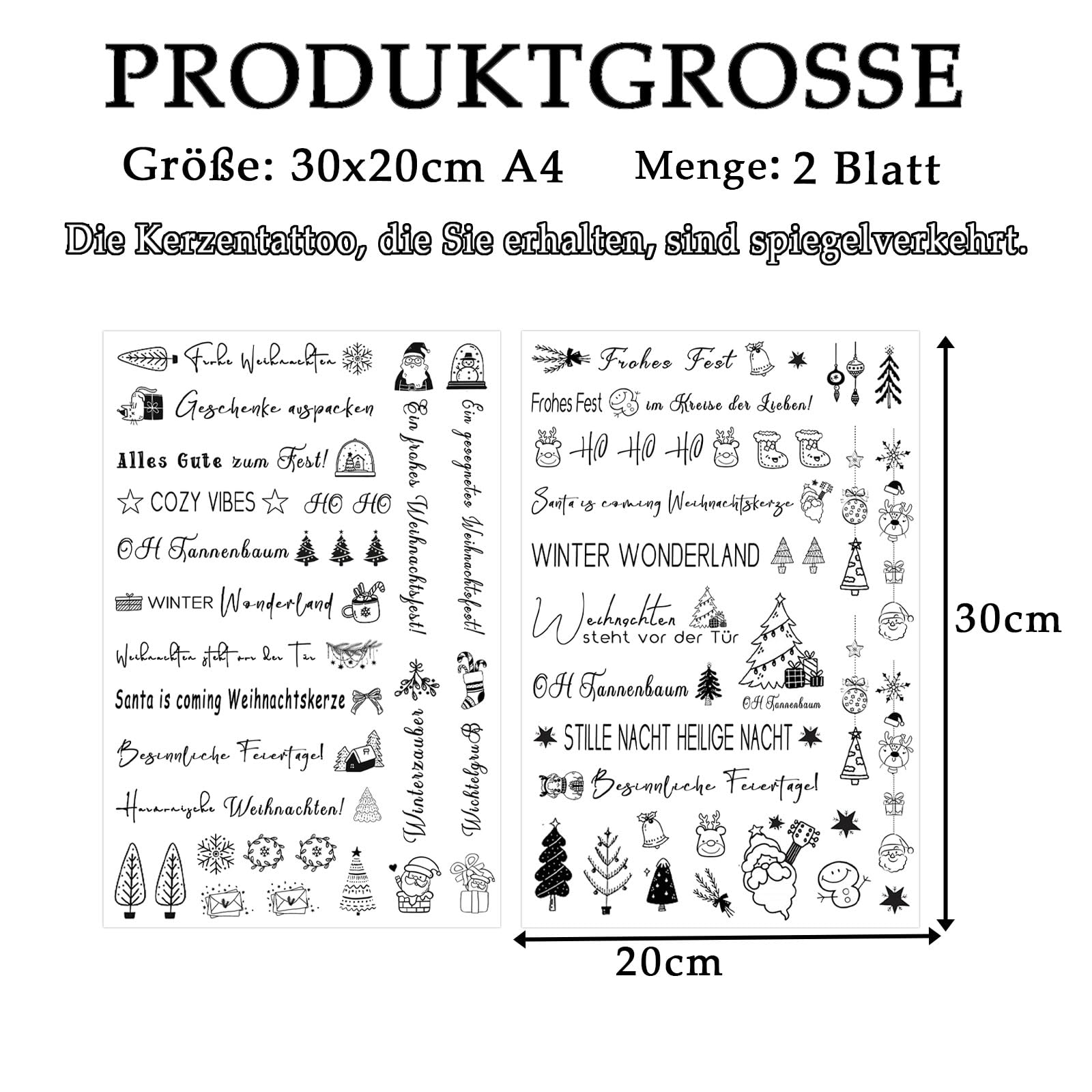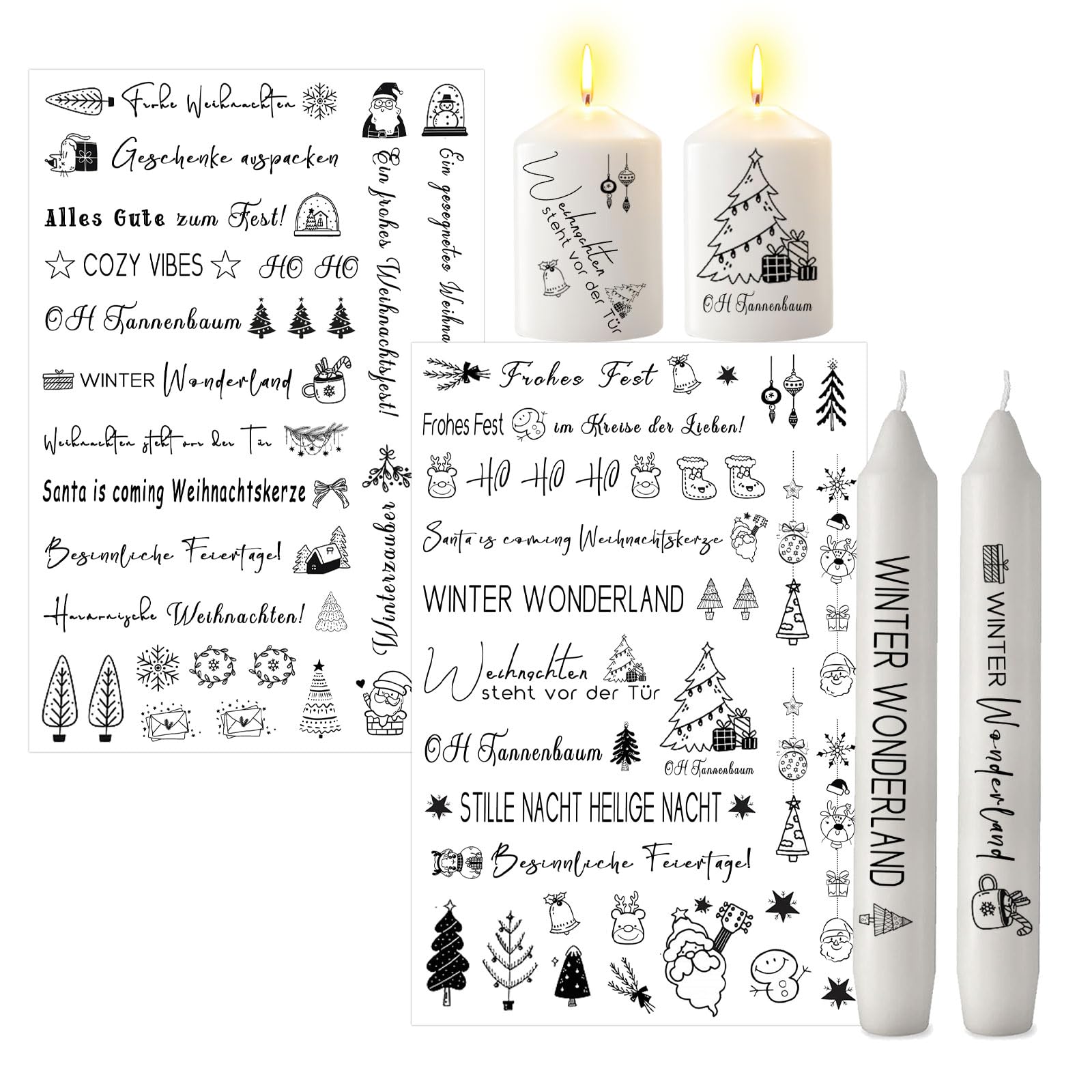 ALLAVA 2 Stück Kerzentattoos Weihnachten, Kerzen Tattoos A4, Wasserschiebefolie Rub on Sticker Weihnachten, Kerzensticker Kerzenfolie für Kerzen oder Keramik Bogen DIY Stickerbogen (Weihnachten A)