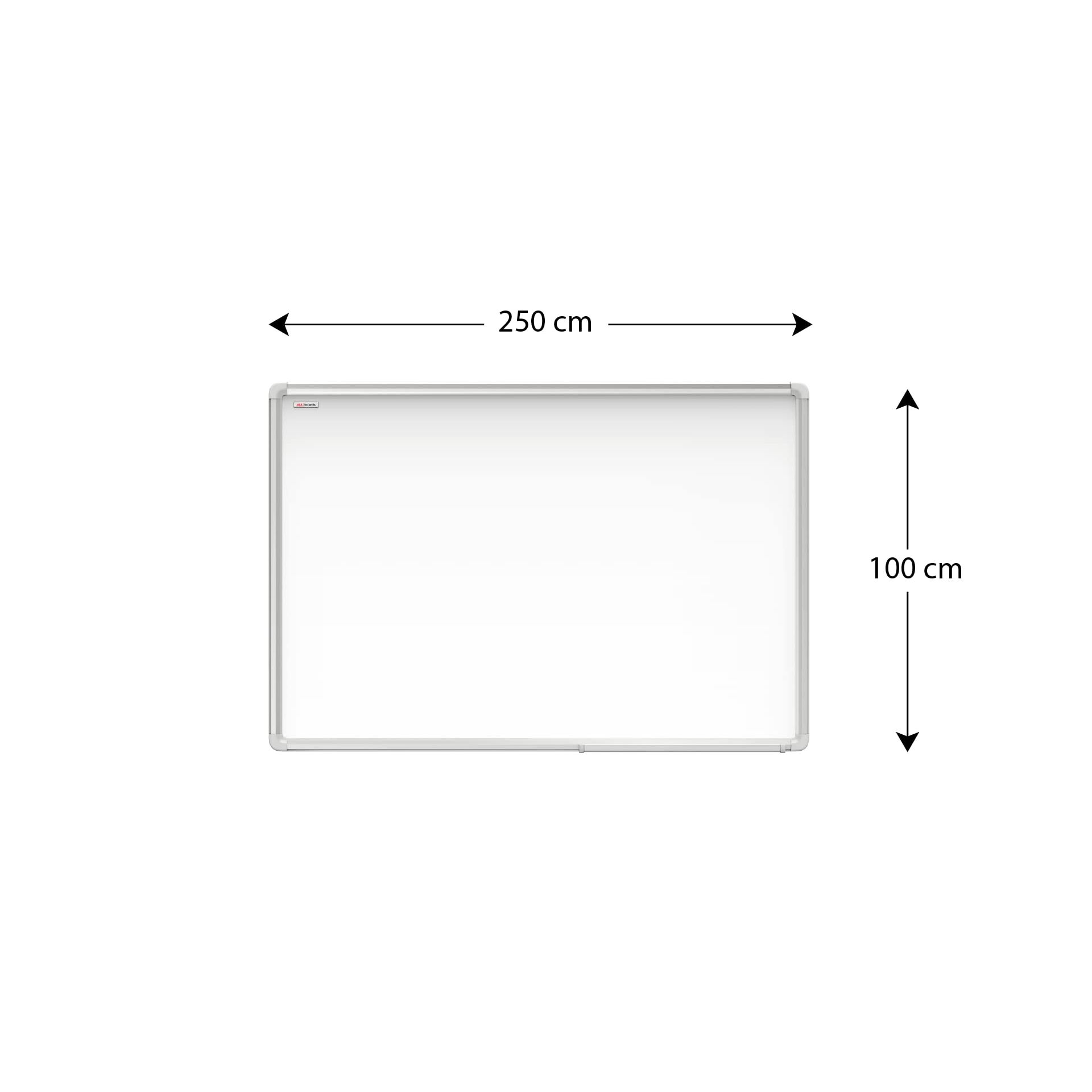 ALLboards Magnetisches Whiteboard 250x100cm Magnettafel mit Aluminiumrahmen Premium EXPO und Stifteablage, Weiss Magnetisch Tafel, Trocken Abwischbar, Wiederbeschreibbar Weisstafel