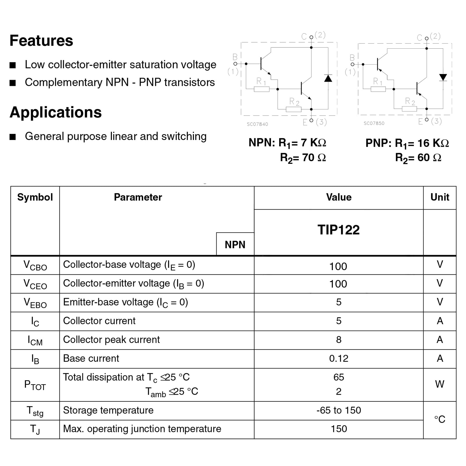 Packliste20 Stück TIP122 Epitaxial-Darlington-NPN-Transistoren