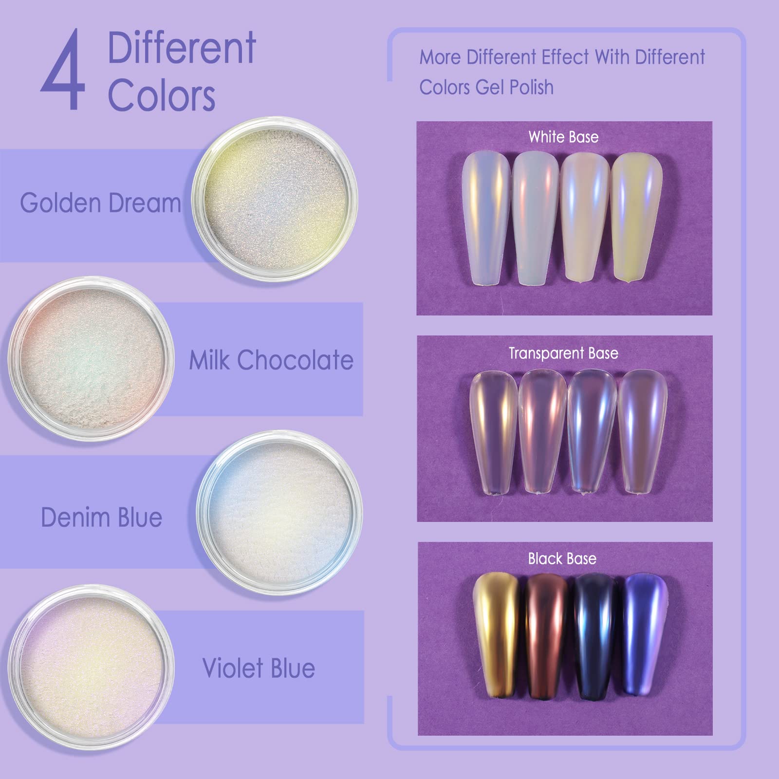 Allstarry Chrome Nail Powder, 4 Farben Pigment Für Nägel Iridescent Aurora Cromepulver Nägel Nails Metallischer Spiegel Effekt Glitzerpuder für Nail Charms Nail Art Nageldesign - Meerjungfrauen