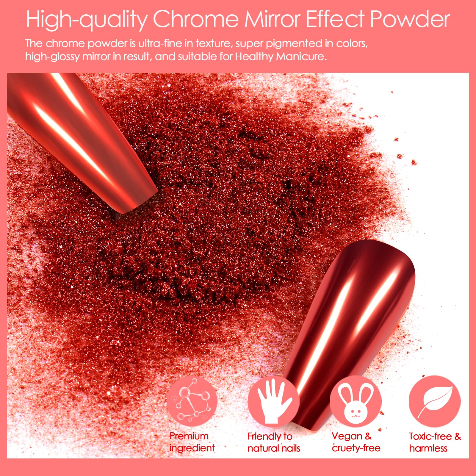 (4)Mirror effect powder: Dip the powder with the sponge stick on the nail and burnish it to achieve a mirror effect.
