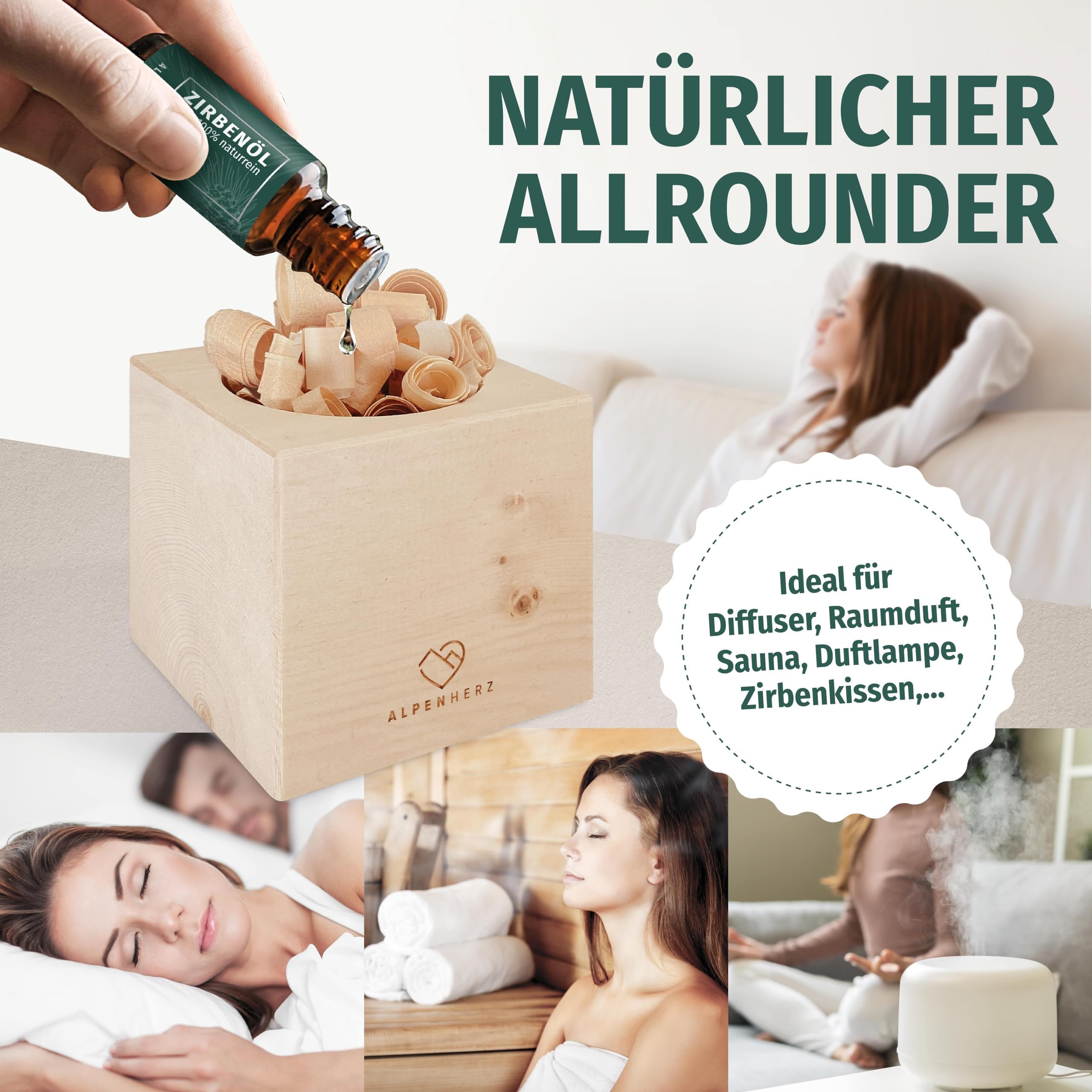• ????‍♀️VIELSEITIGE ANWENDUNG - Unser Zirben Öl eignet sich hervorragend für den Einsatz in Raumduft, Duftöl Lampe, Zirbenöl für Kissen , Aroma diffuser Zirbenholz, Zirbenwürfel, Duftöl Auto, Duftlampe Teelicht, Sauna, Saunaaufguss Zirbe, Zirben, Kamin, Zirbenkugel, Ofen, Wärmekabine, Infrarotsauna, Infrarotkabine, Dampfdusche, Zirbenkissen, Zirben Holz, Duftspender, Geschenke, Zirbenspäne, Zirbenlüfter, Diffusor, Difuser, Zirbenlampe