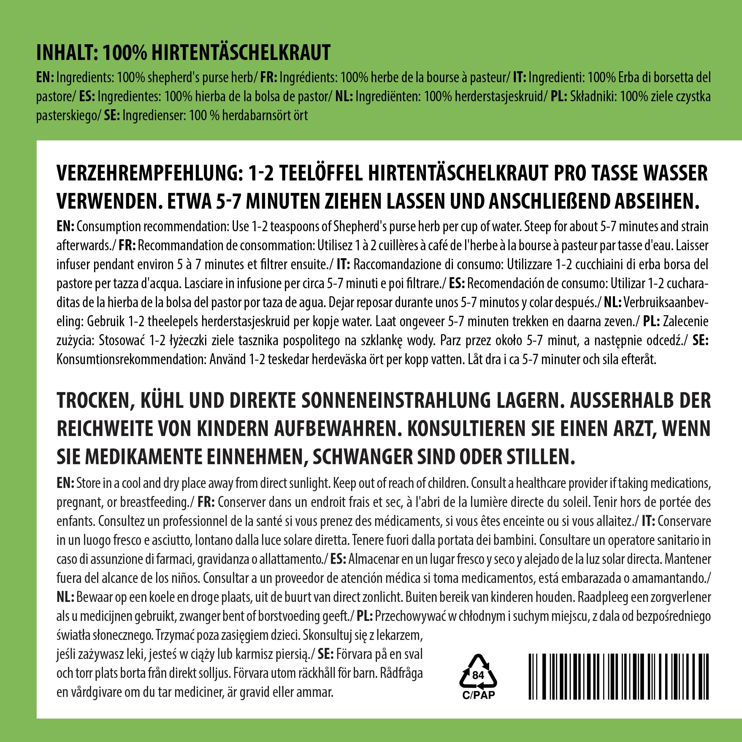 Alpi Nature Hirtentäscheltee 250g, Hirtentäschelkraut geschnitten, Hirtentäschel Tee, Kräutertee