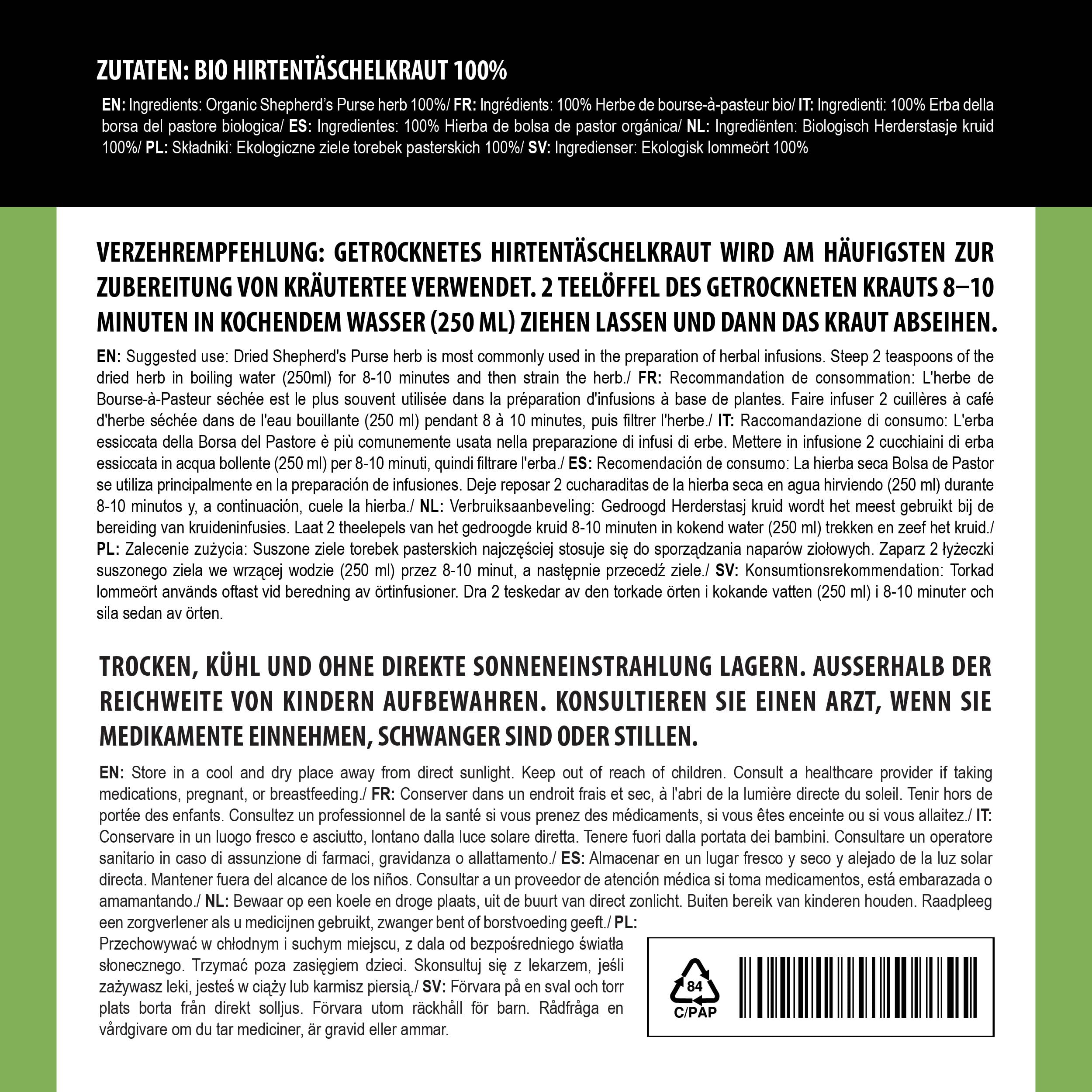 Alpi Nature Hirtentäscheltee BIO 250g, Hirtentäschelkraut geschnitten, Hirtentäschel Tee lose