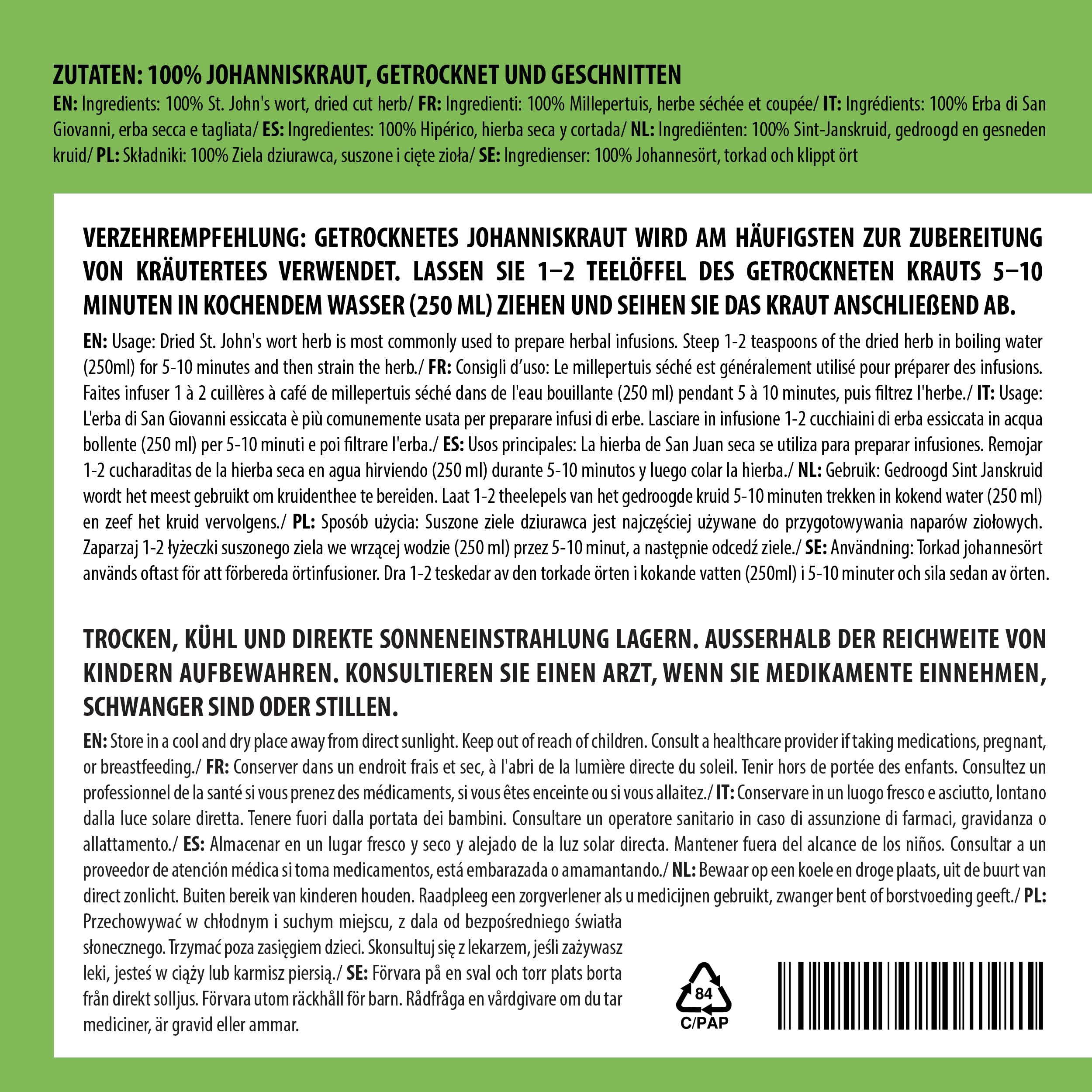 Mindestanzahl für die Bestellung von "Alpi Nature Johanniskraut Tee 1kg, Johanniskraut getrocknet und geschnitten, Johanniskrauttee" ist 1.