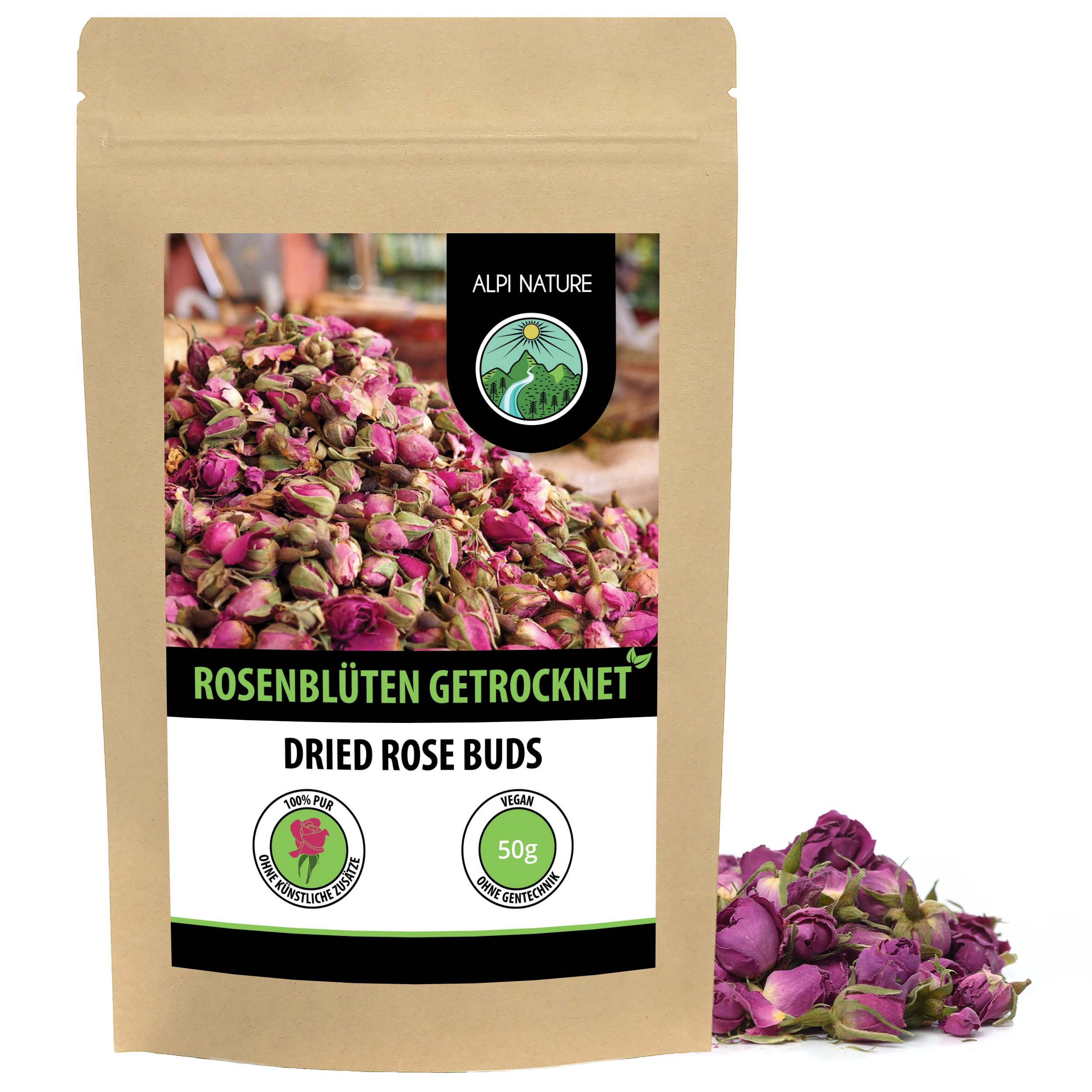 Alpi Nature Rosenblüten getrocknet 50g, Rosenblüten Tee, Rosentee, ganze Rosenknospen getrocknet, Rosen Tee lose