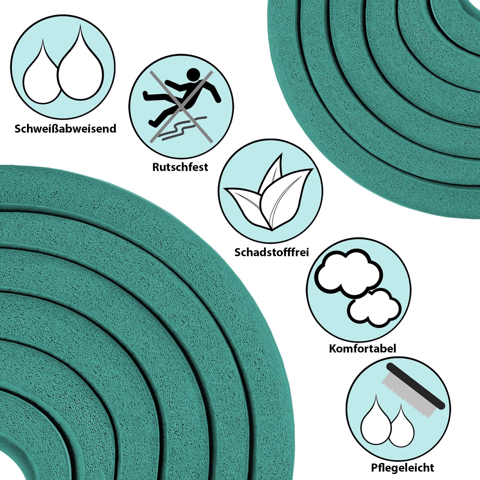 • ???? IMMER DABEI: ein praktischer Tragegurt vereinfacht den Transport * mit 15,5 cm Durchmesser ist die Matte zusammengerollt kompakt und praktisch zu verstauen * auch auf Reisen mit einem Gewicht von nur 850 Gramm ein hervorragender Begleiter