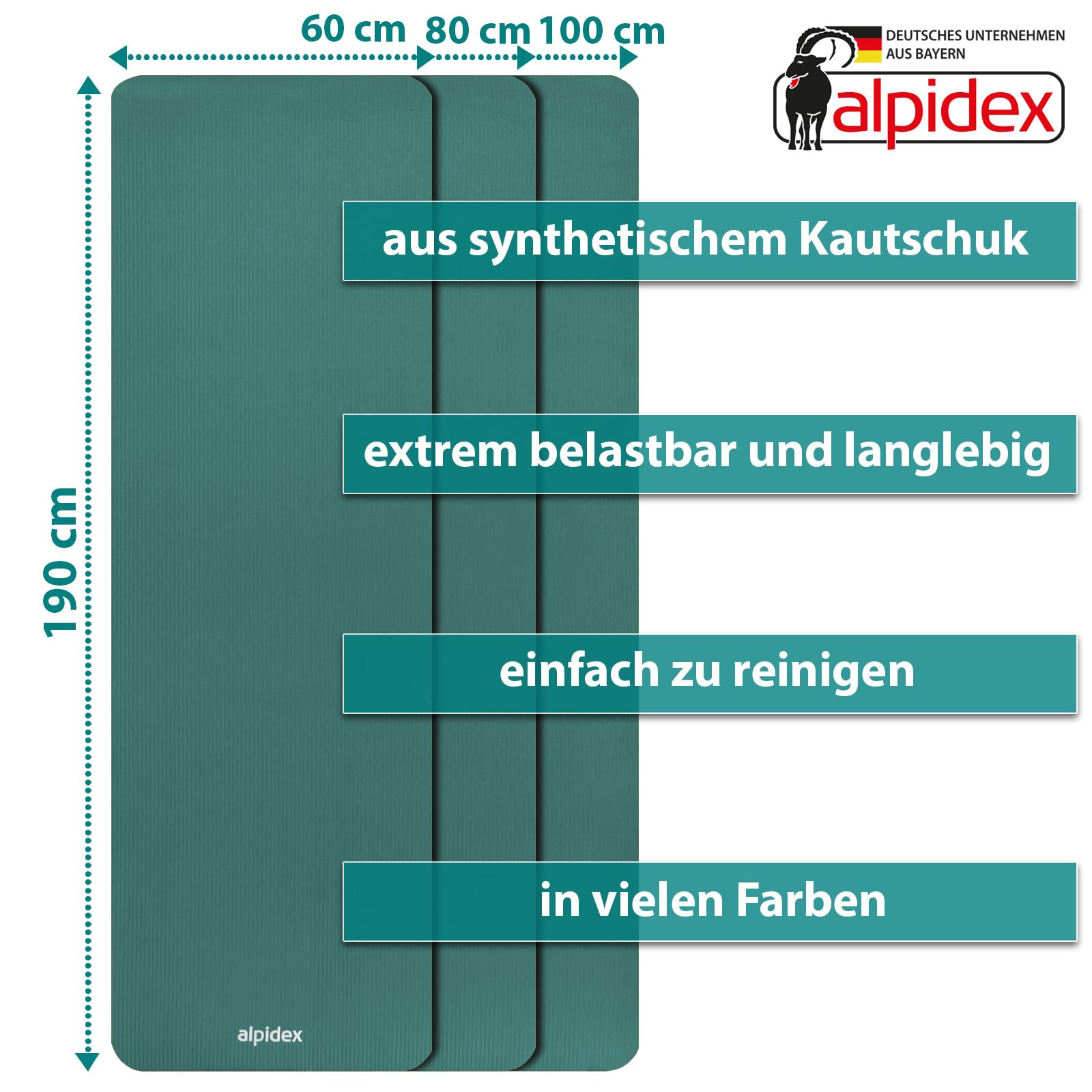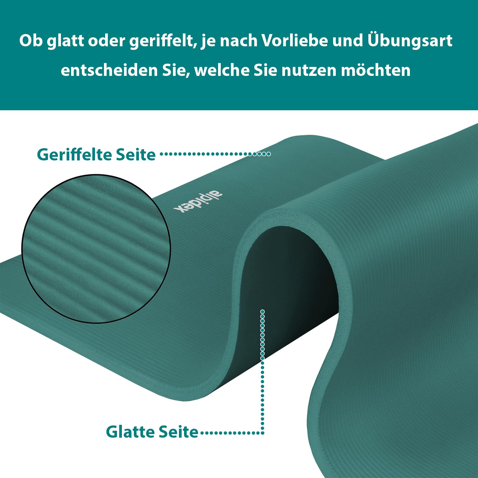 ALPIDEX Yogamatte Extra Dick 1,5 cm Gymnastikmatte 3 Grössen E-Book rutschfest Phthalatfrei Fitness Matte Turnen Pilates Sport Physio HIIT Yoga Trainingsmatte Isomatte