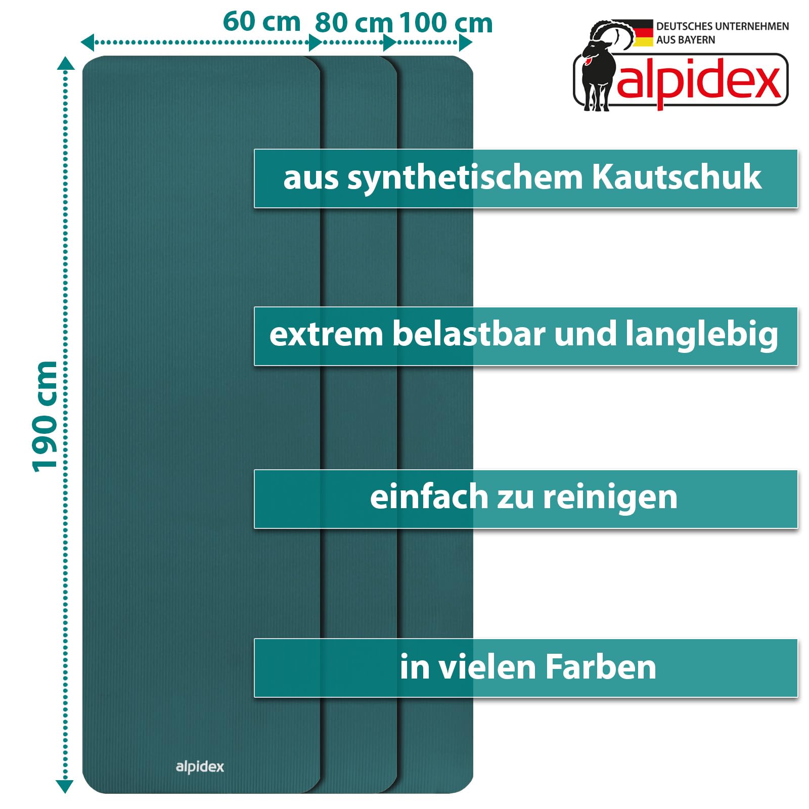 ALPIDEX Yogamatte Extra Dick 1,5 cm Gymnastikmatte 3 Grössen E-Book rutschfest Phthalatfrei Fitness Matte Turnen Pilates Sport Physio HIIT Yoga Trainingsmatte Isomatte