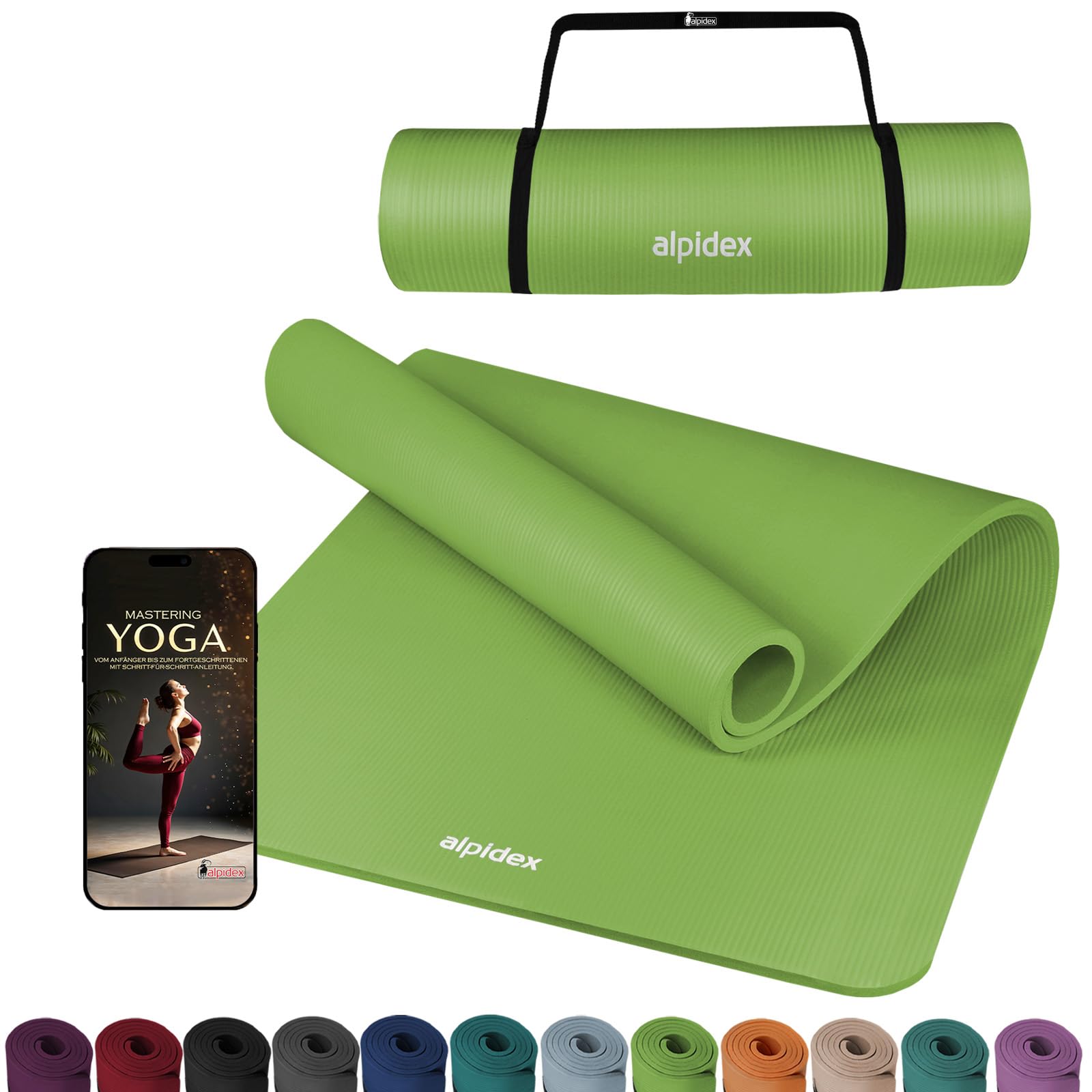 ALPIDEX Yogamatte Extra Dick 1,5 cm Gymnastikmatte 3 Grössen E-Book rutschfest Phthalatfrei Fitness Matte Turnen Pilates Sport Physio HIIT Yoga Trainingsmatte Isomatte