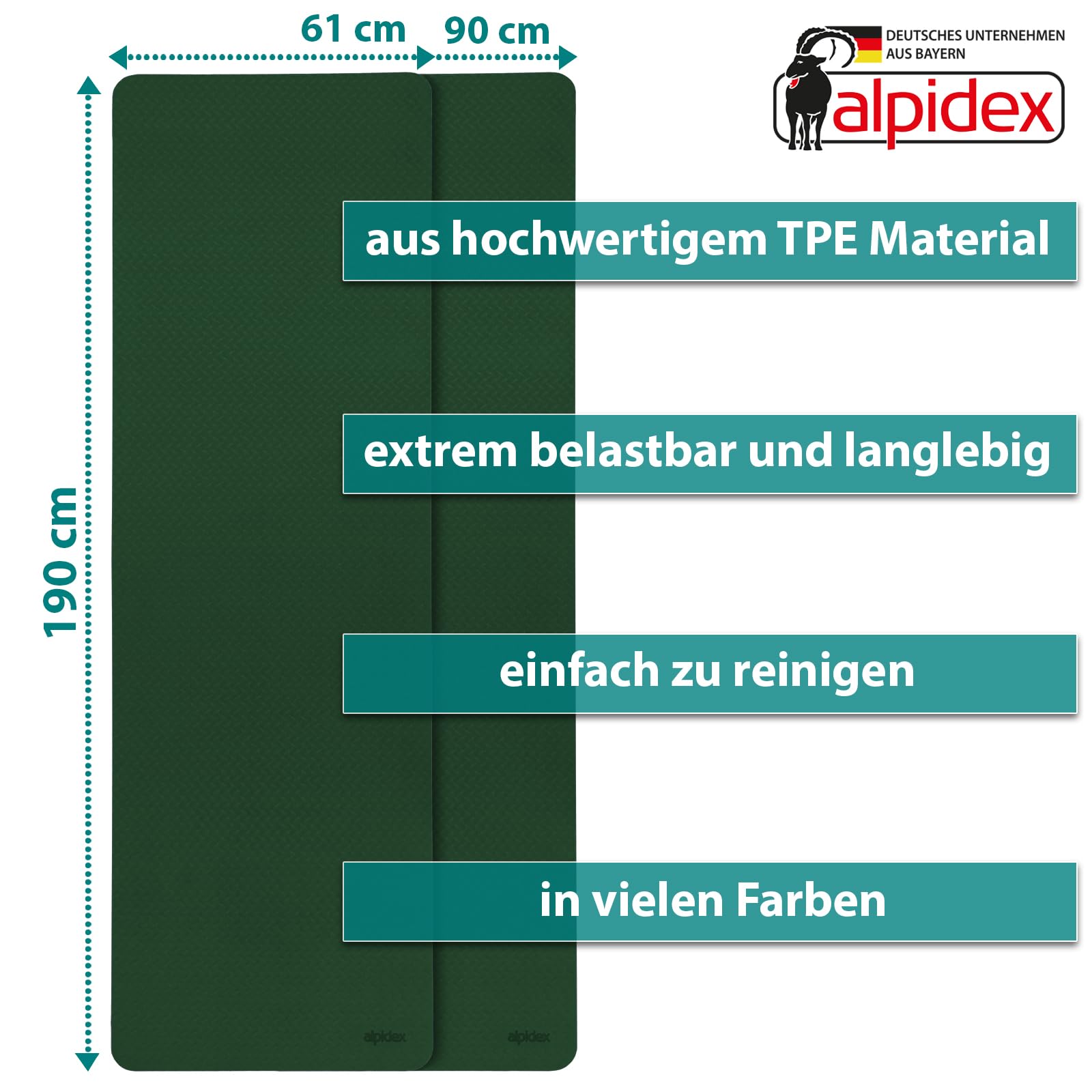 ALPIDEX Yogamatte rutschfest 190 x 61 x 0.6 cm | 190 x 90 x 0.6 cm E-Book Phthalatfreie Fitness TPE Matte Gymnastik Turnen Pilates Sport Yoga Trainingsmatte