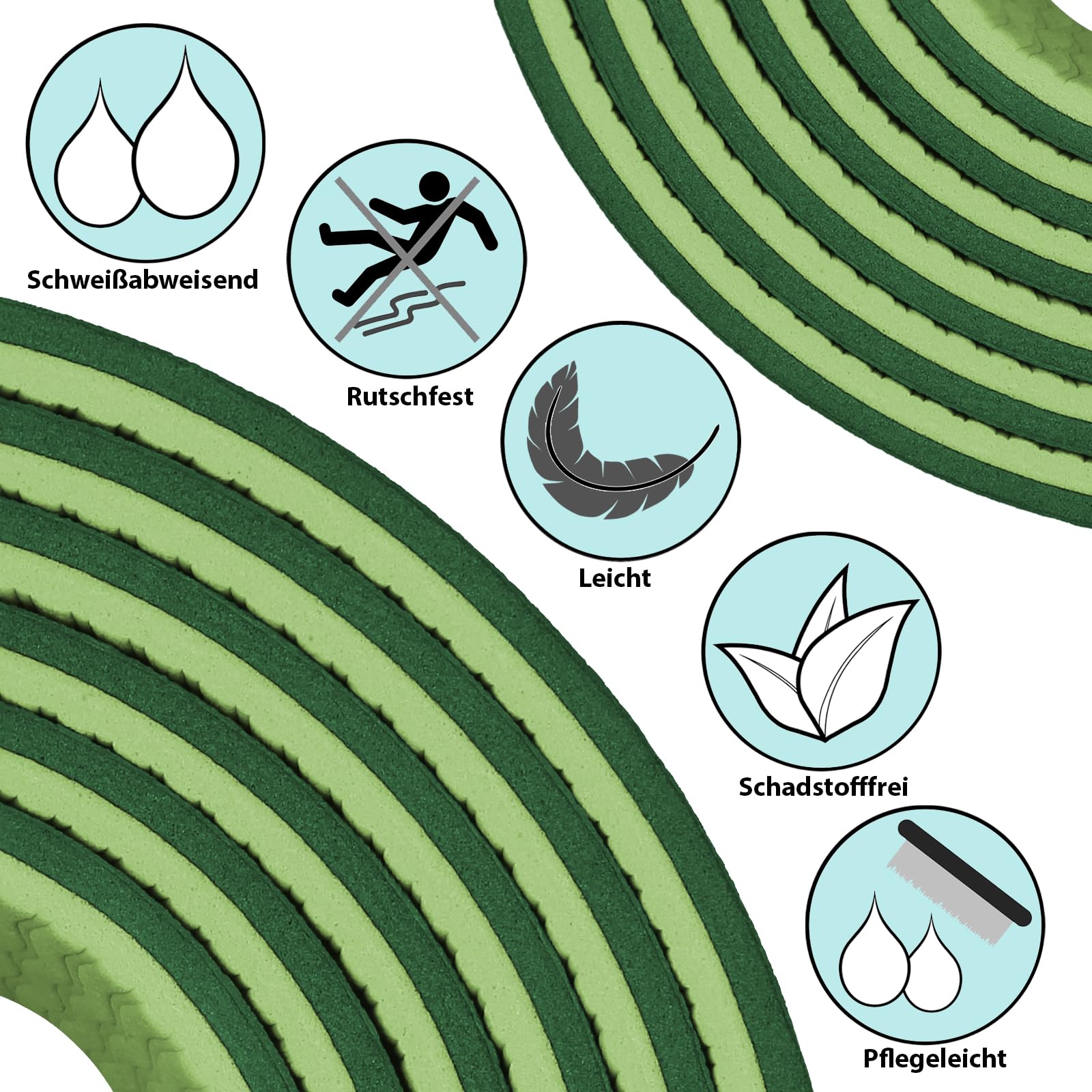 • HOCHWERTIGES MATERIAL: die Gymnastikmatte besteht aus umweltfreundlichem TPE * PVC- und latexfrei * besonders pflegeleicht, geruchslos, hautfreundlich und zu 100 % biologisch abbaubar * die Übungsmatte lässt sich problemlos mit einem feuchten Tuch abwischen