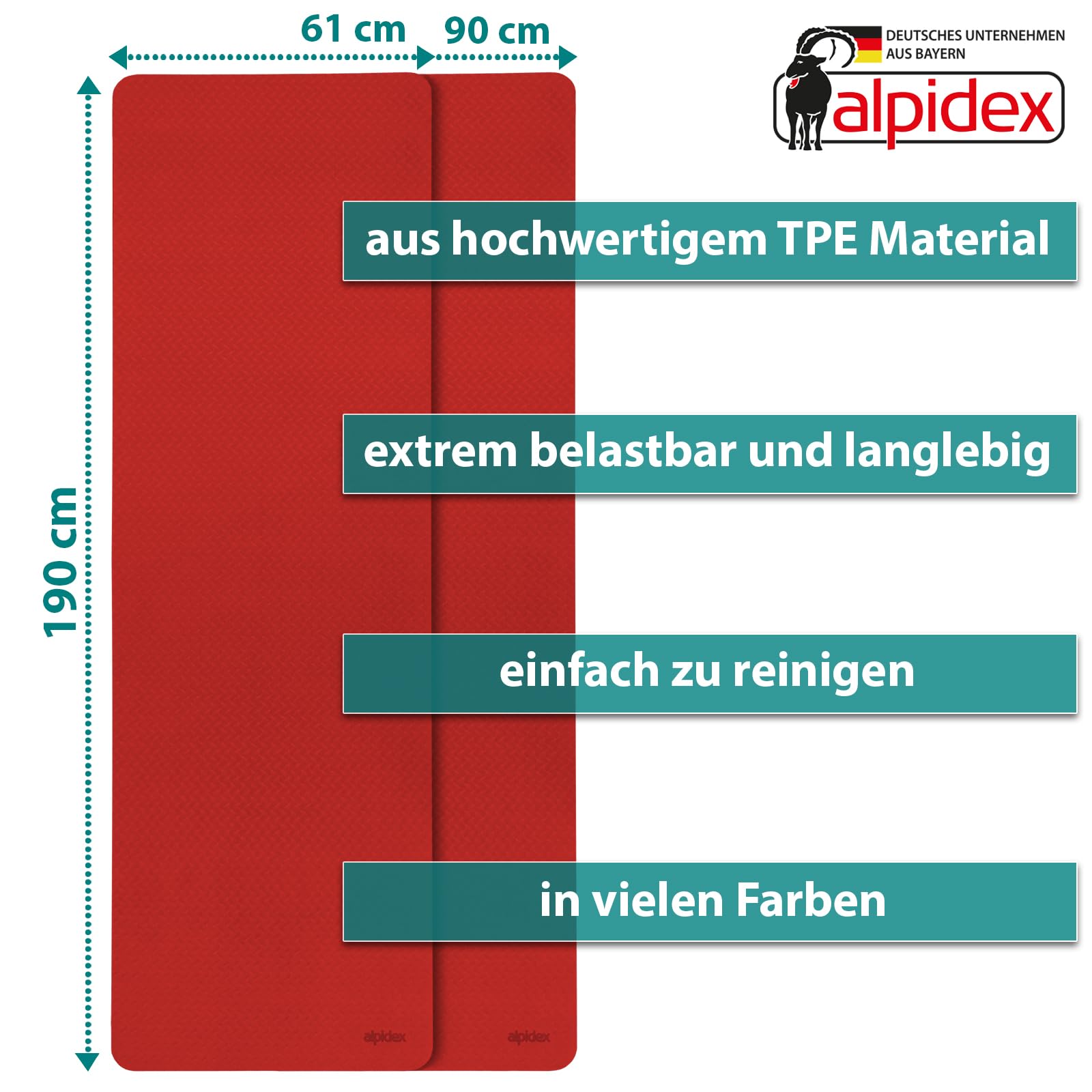 ALPIDEX Yogamatte rutschfest 190 x 61 x 0.6 cm | 190 x 90 x 0.6 cm E-Book Phthalatfreie Fitness TPE Matte Gymnastik Turnen Pilates Sport Yoga Trainingsmatte