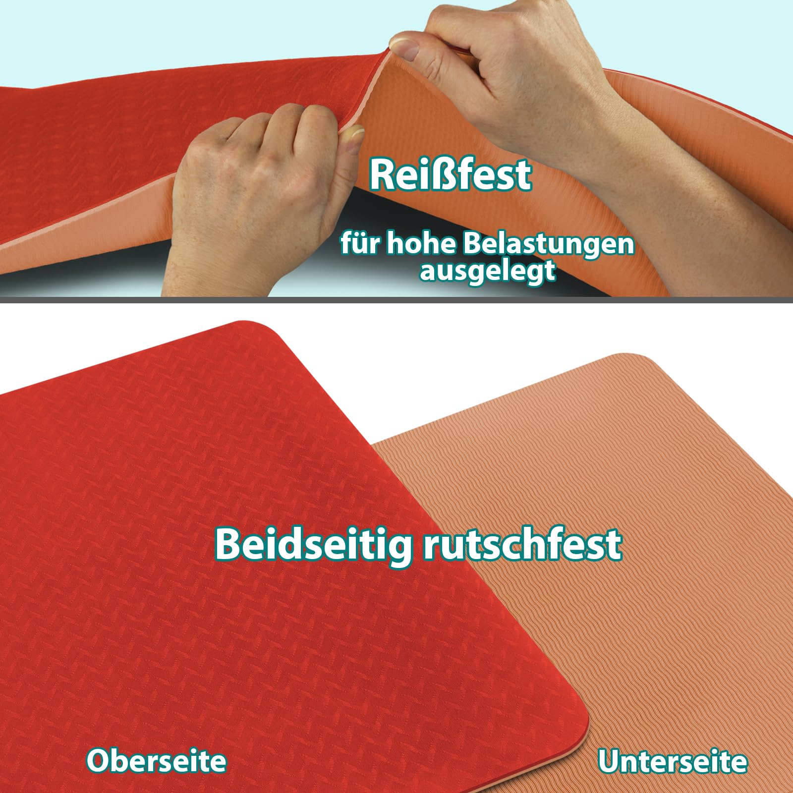• KOMFORTABLE ÜBUNGEN: Rücken, Ellbogen und Knie werden sorgfältig gepolstert * optimale Dicke von 6 mm ermöglicht Standfestigkeit und Komfort zugleich * auch in extra Breit erhältlich - somit hat man deutlich mehr Platz um Übungen in alle Richtungen auszuführen