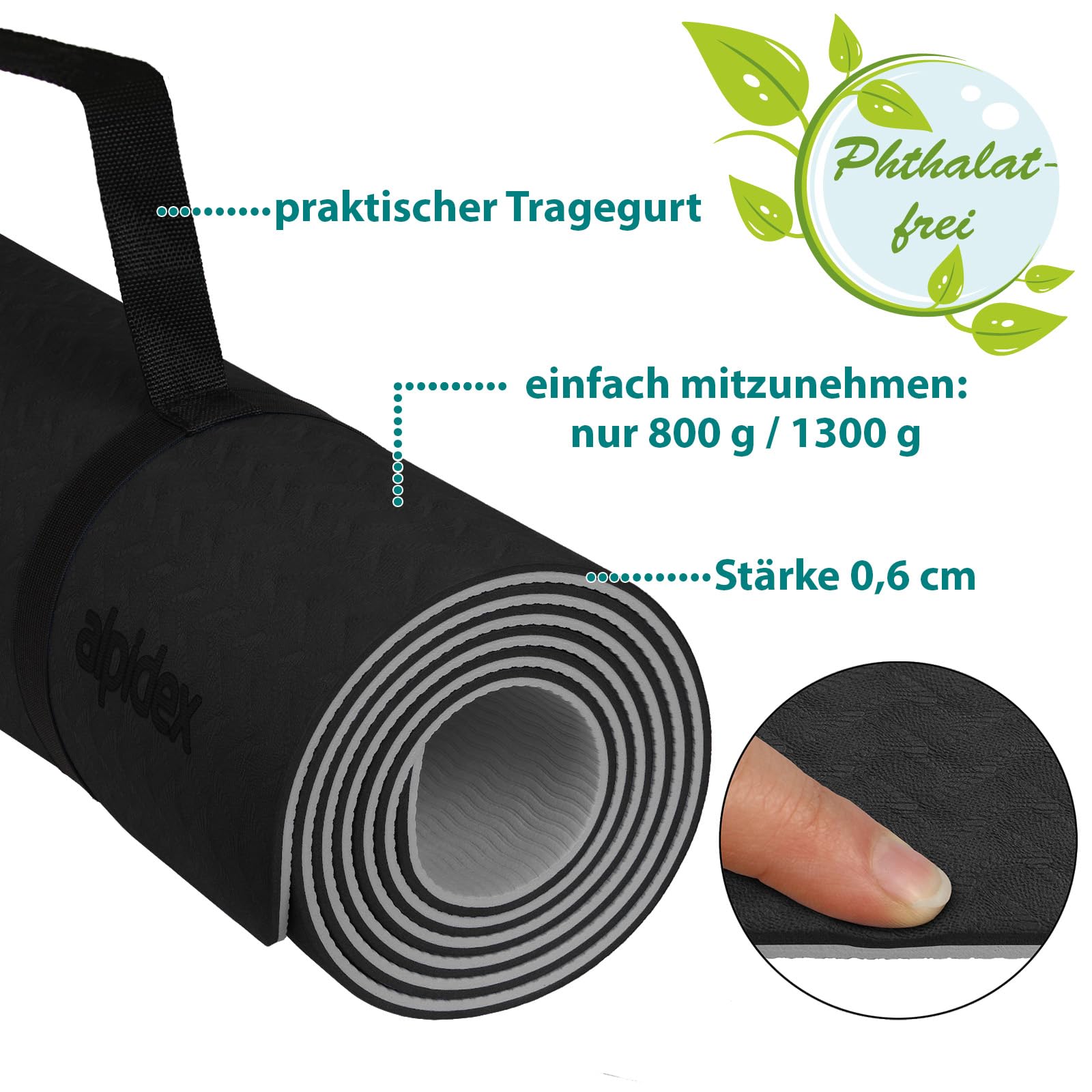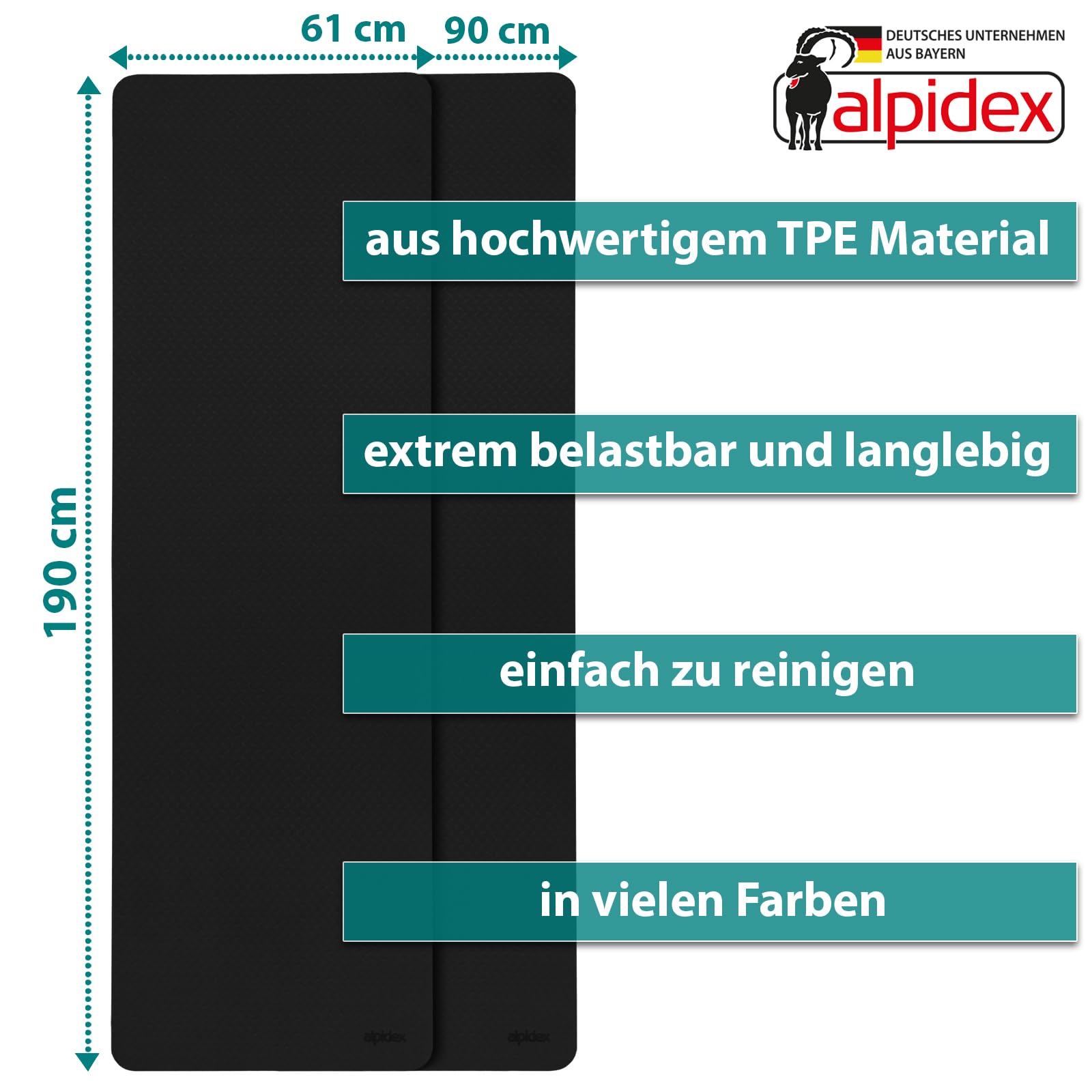 ALPIDEX Yogamatte rutschfest 190 x 61 x 0.6 cm | 190 x 90 x 0.6 cm E-Book Phthalatfreie Fitness TPE Matte Gymnastik Turnen Pilates Sport Yoga Trainingsmatte