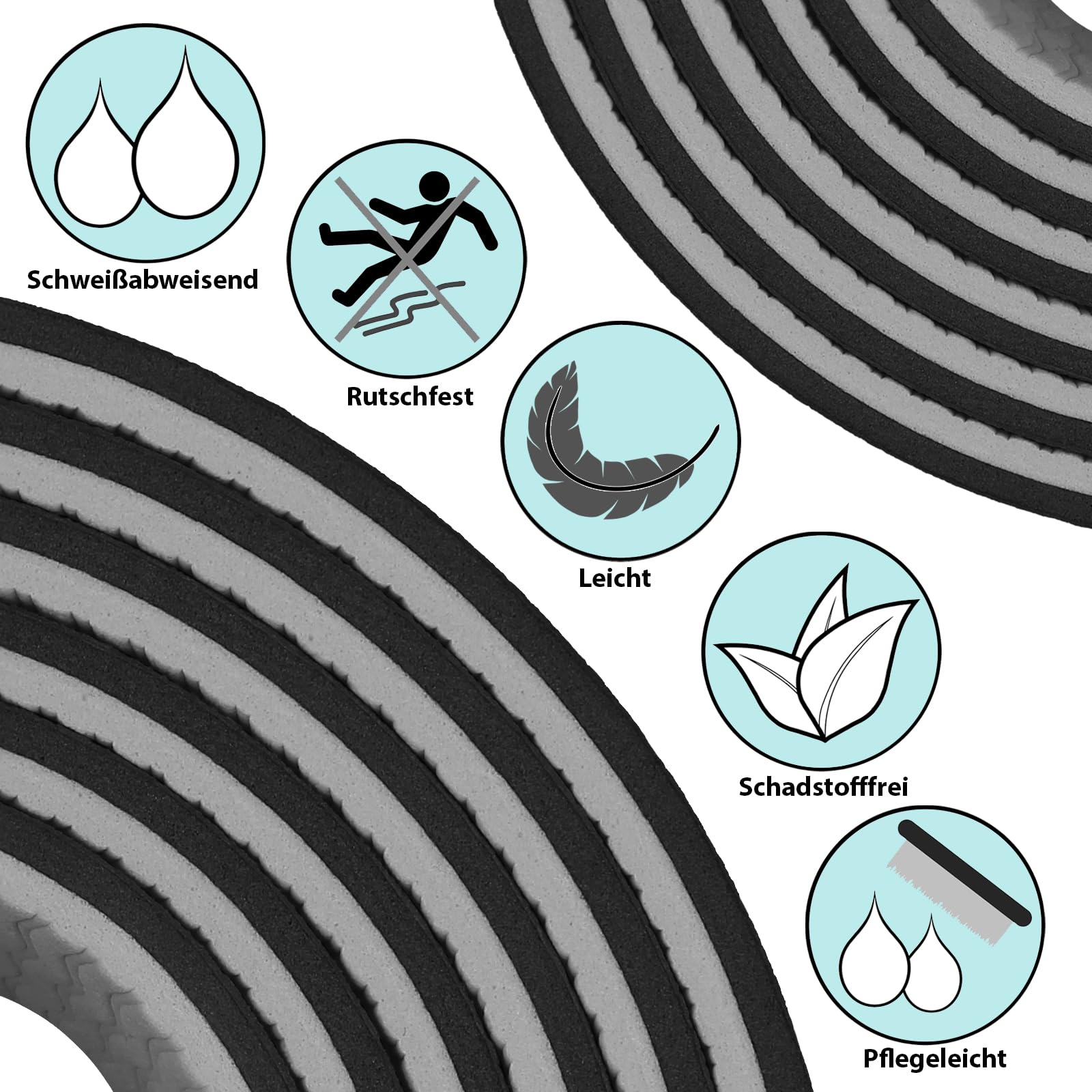 • ???? RUTSCHFEST: durch die rutschfeste Eigenschaft des Materials bleibt die Gymnastikmatte immer an Ort und Stelle * die strukturierte Oberfläche sorgt zusätzlich für einen sicheren Halt bei allen Übungen
