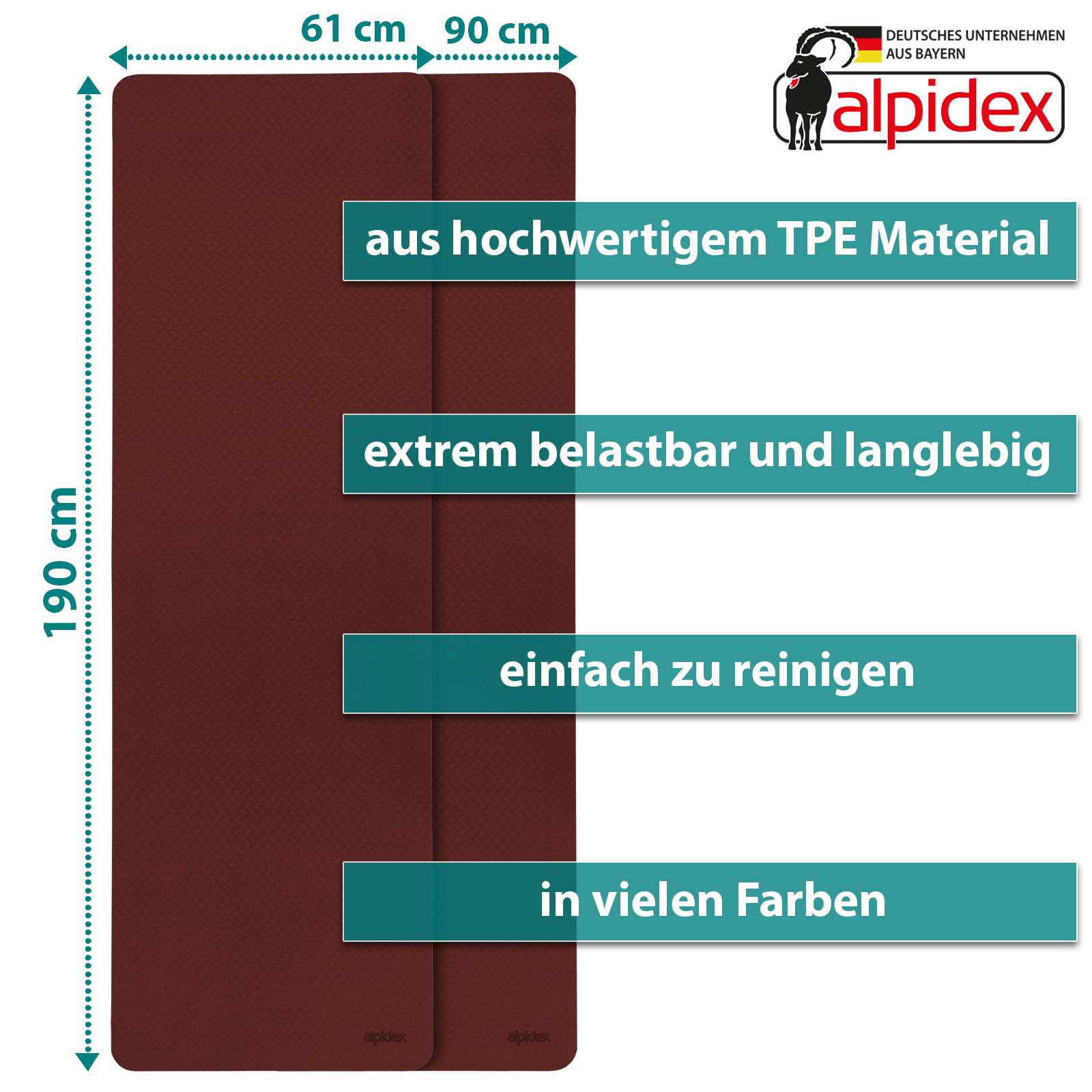 Mindestanzahl für die Bestellung von "ALPIDEX Yogamatte rutschfest 190 x 61 x 0.6 cm | 190 x 90 x 0.6 cm E-Book Phthalatfreie Fitness TPE Matte Gymnastik Turnen Pilates Sport Yoga Trainingsmatte" ist 1.