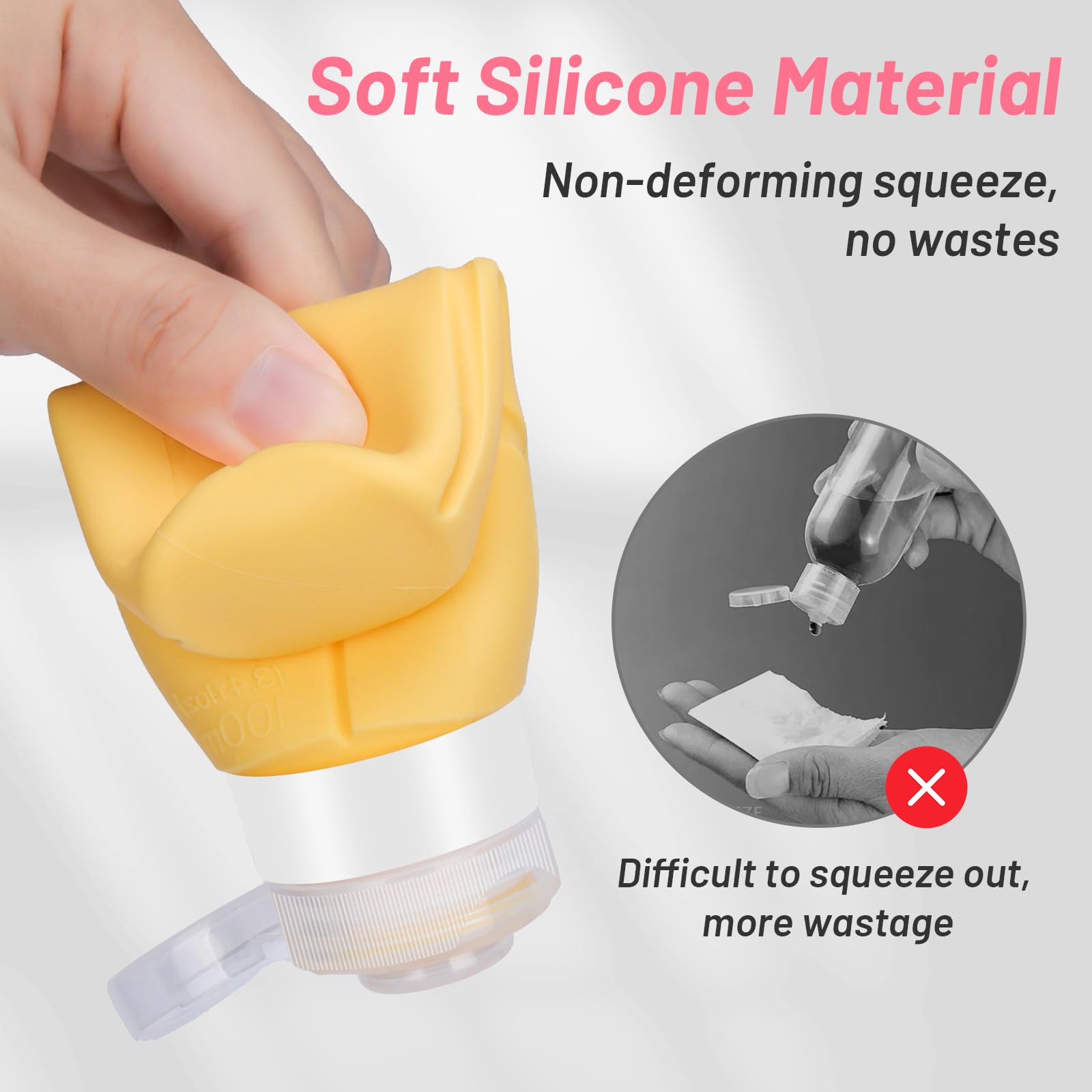 Alyvisun 4 Stück Silikon Reiseflaschen 100ml, [Nachfüllbar & Auslaufsicher] Reisegröße Behälter, Reiseflaschen zum Befüllen von Shampoo, Lotion, Kosmetik