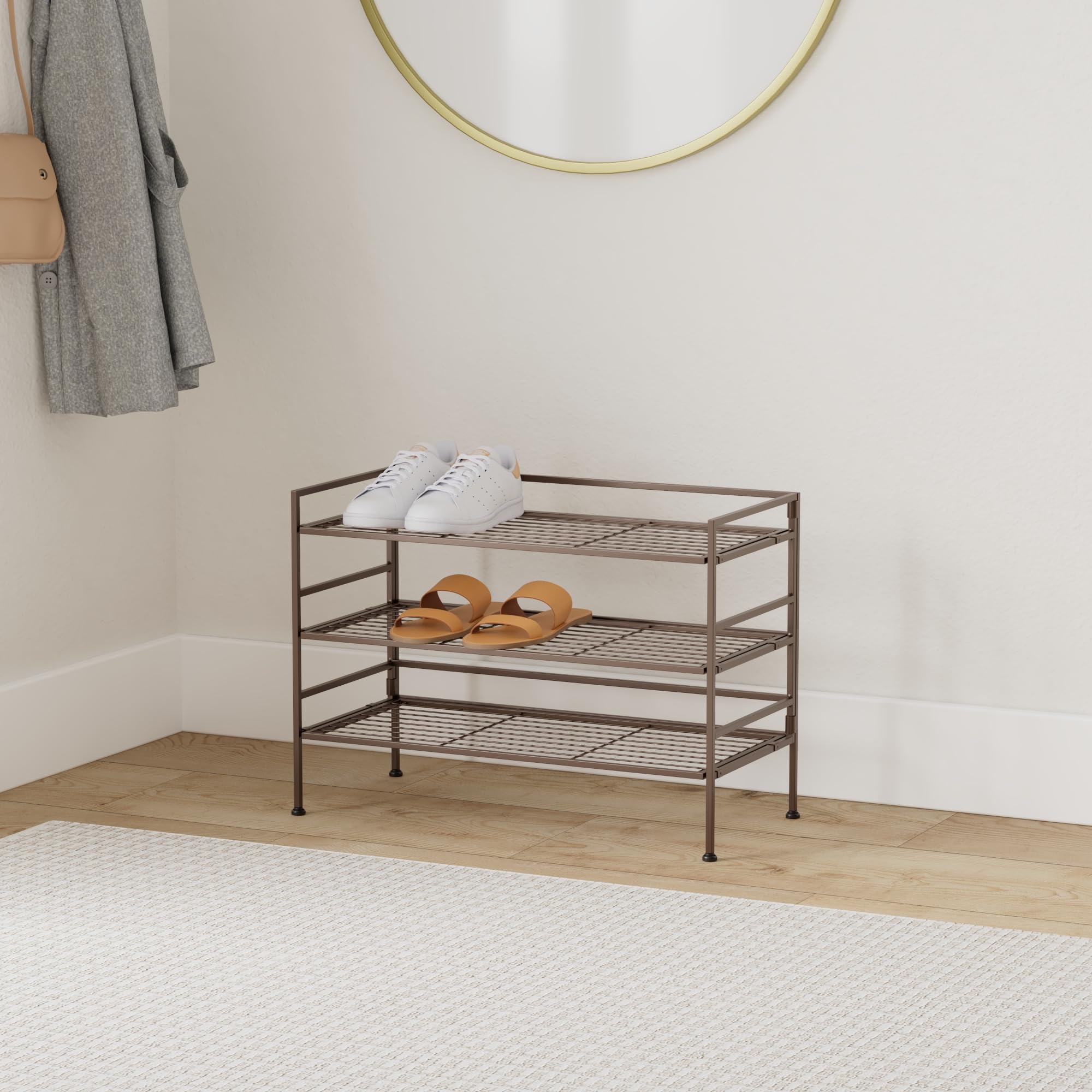 Amazon Basics 3-Lagiges Schuhregal Für 9 Paare, Braun, 68 D x 32 W x 47.5 H cm