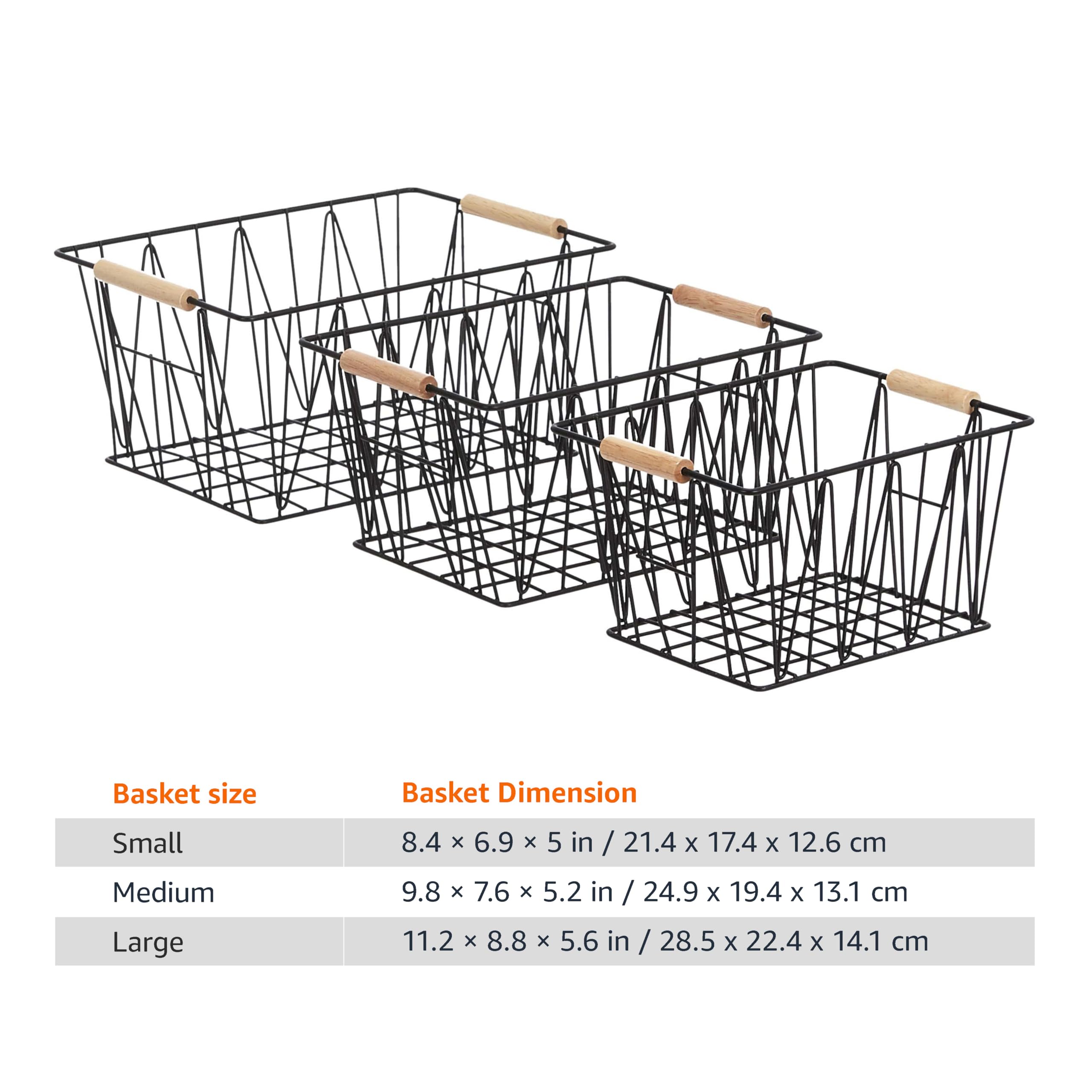 Amazon Basics Aufbewahrungskörbe Rechteckig aus Draht, 3 Stück, Standard, Schwarz