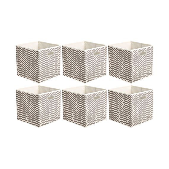 Amazon Basics Zusammenklappbare Aufbewahrungswürfel aus Stoff mit ovalen Ösen, 6er-Pack, Zackenmuster in Taupe, 26,7 x 26,7 x 28 cm