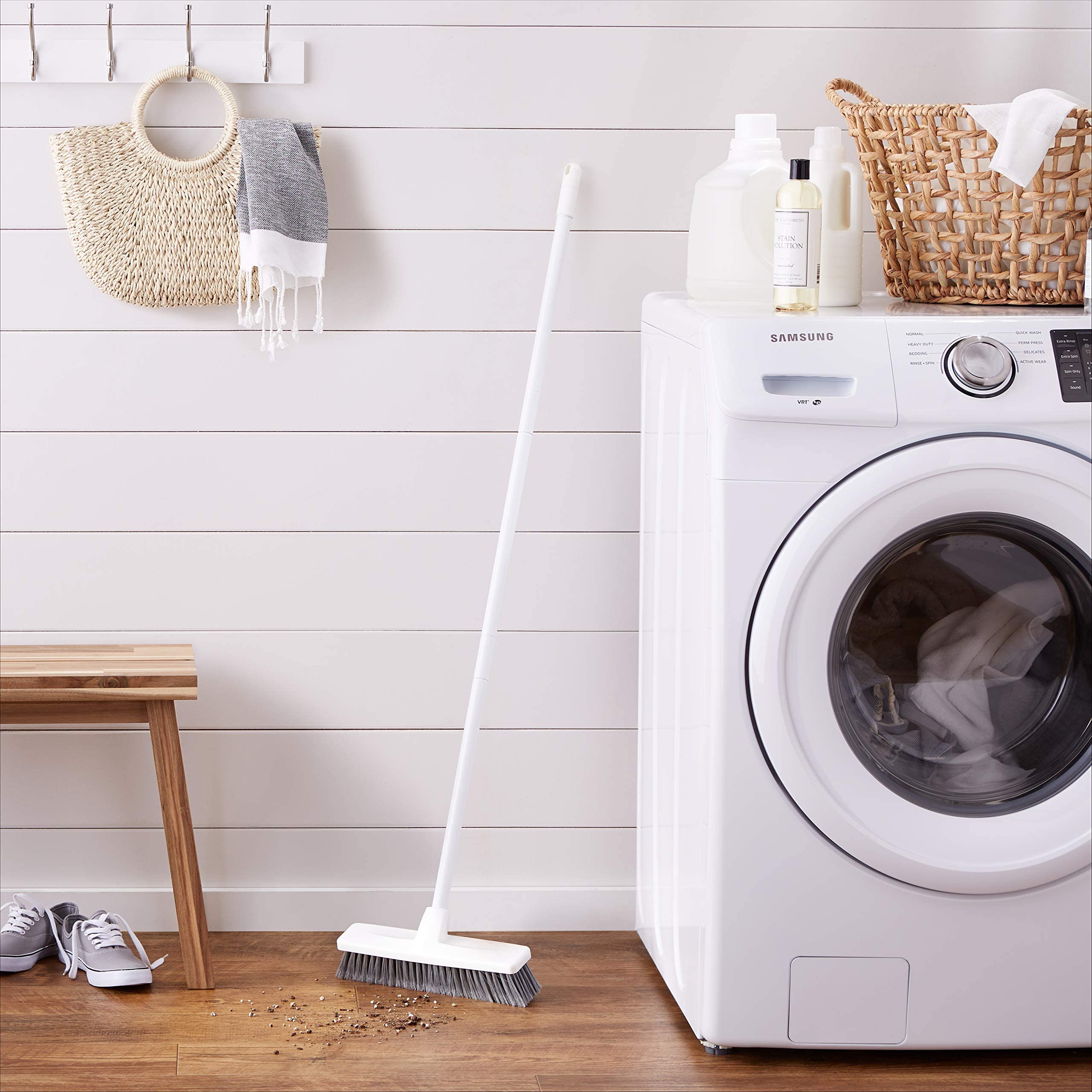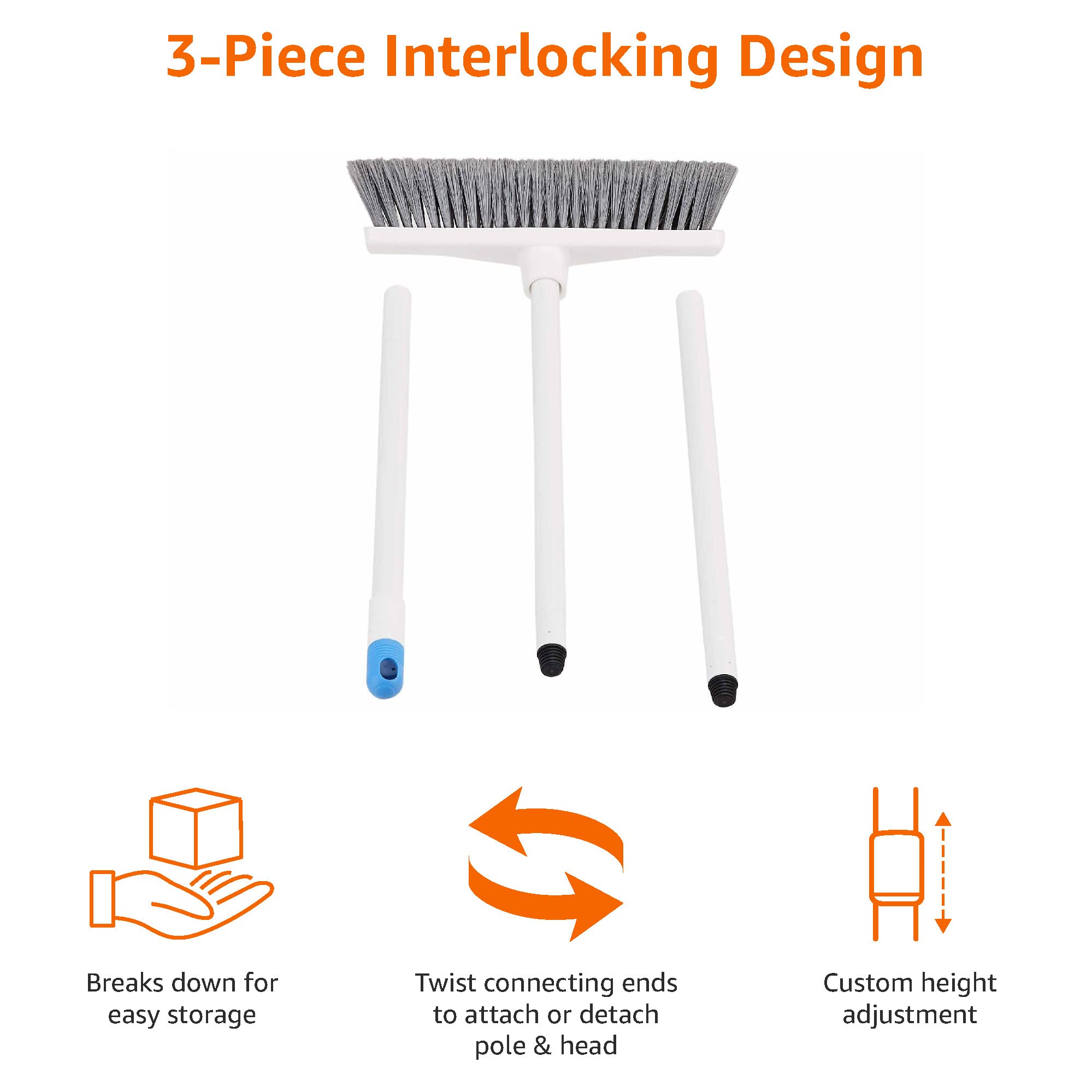 Amazon Basics Besen mit abgewinkeltem Stiel, Blau/Weiss