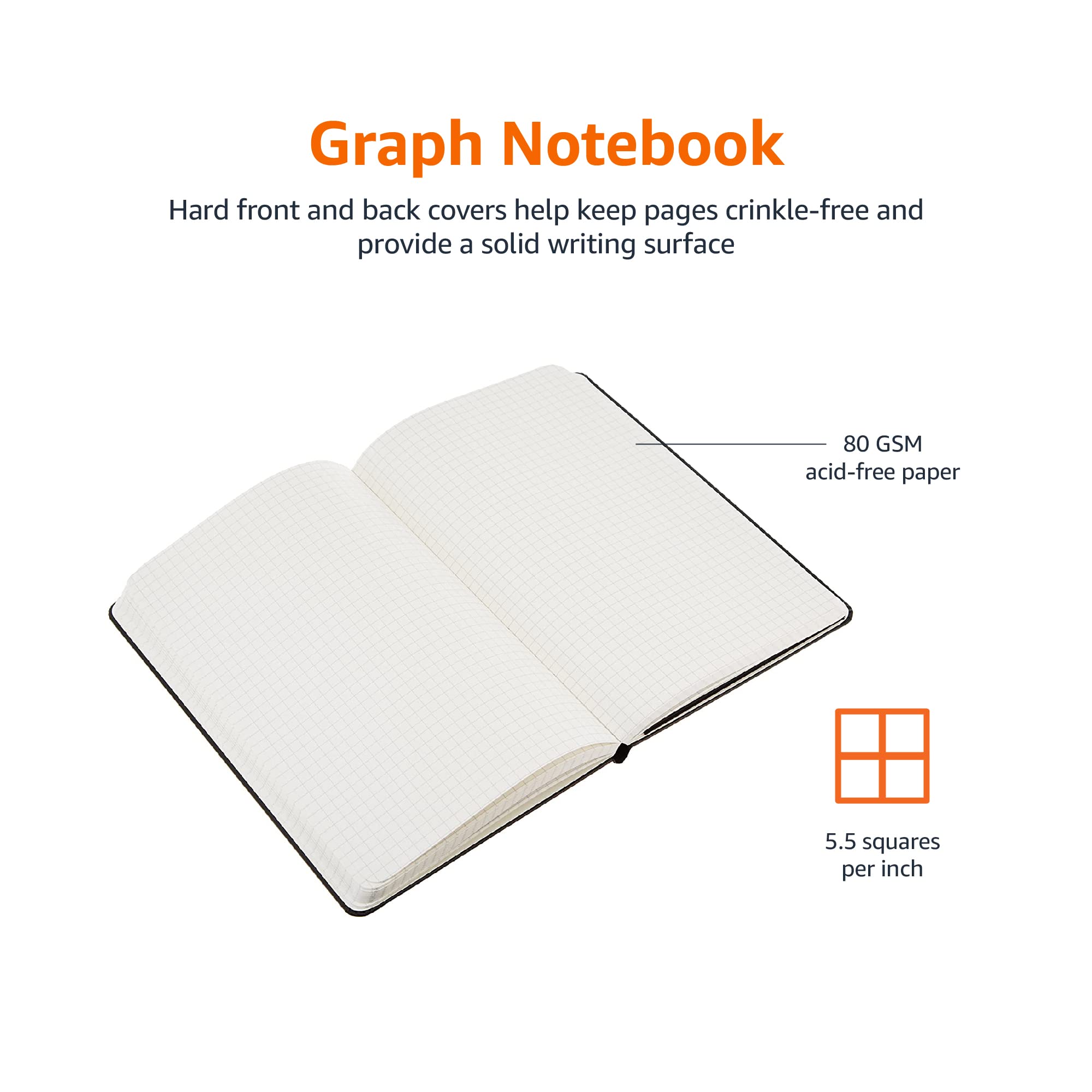 Amazon Basics Notizbuch, klassisches Design, A5, kariert, Schwarz (Packung mit 2)