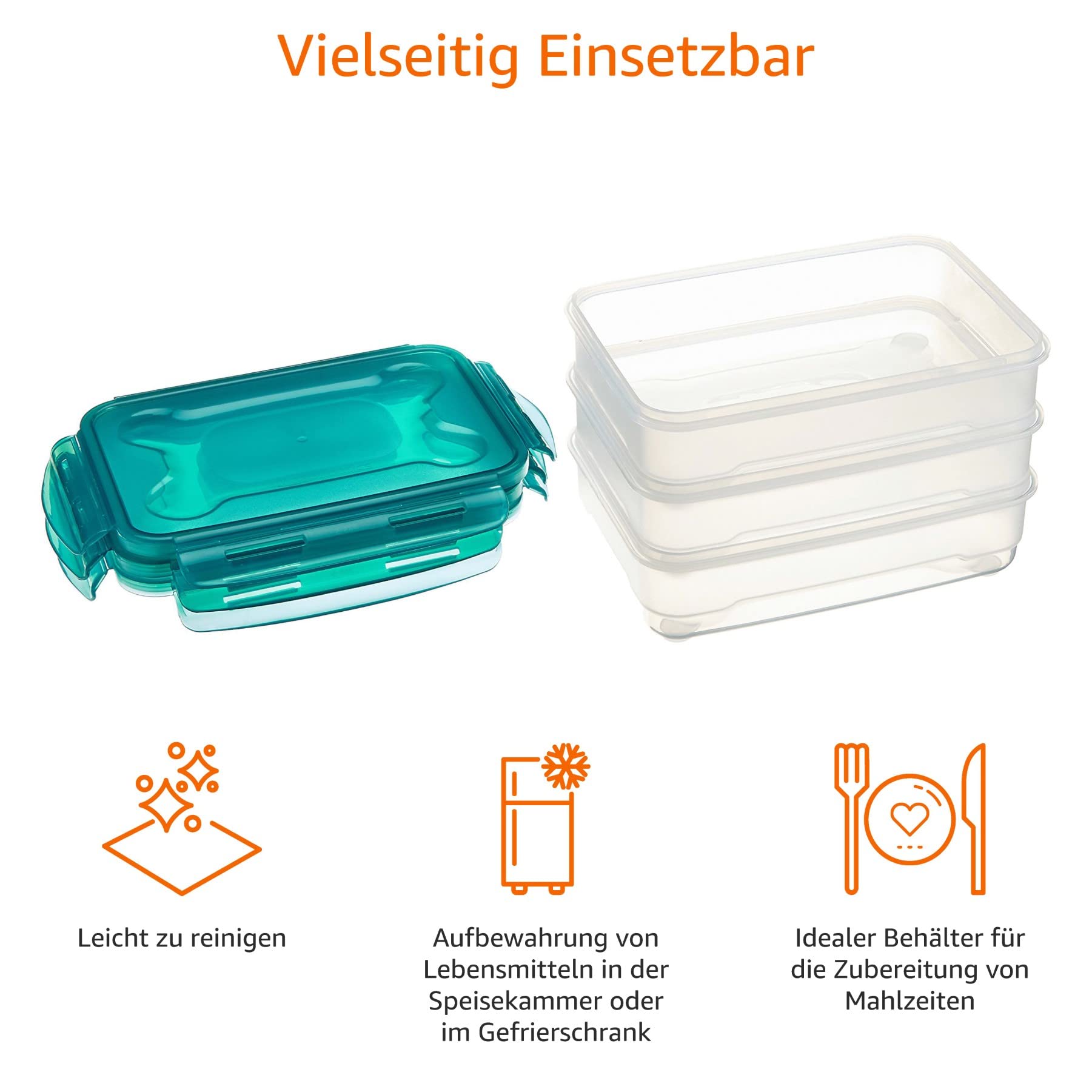 Amazon Basics Gefrierbehälter im Set, mit Deckel, luftdicht, auslaufsicher, stapelbar, für Kühlschrank/Gefriertruhe, BPA-frei, Kunststoff, mikrowellen- und spülmaschinenfest, 3 x 1.2 l, farblos
