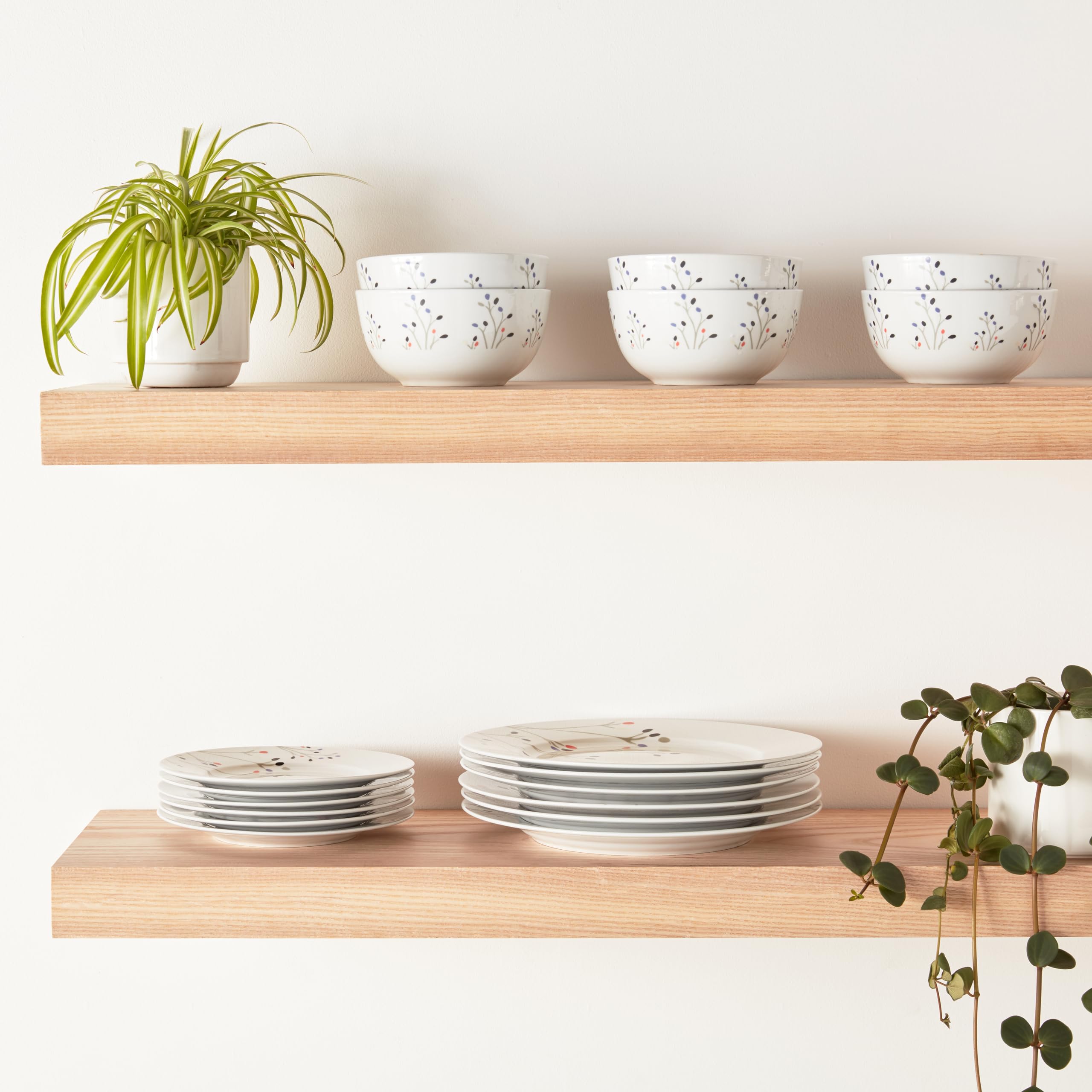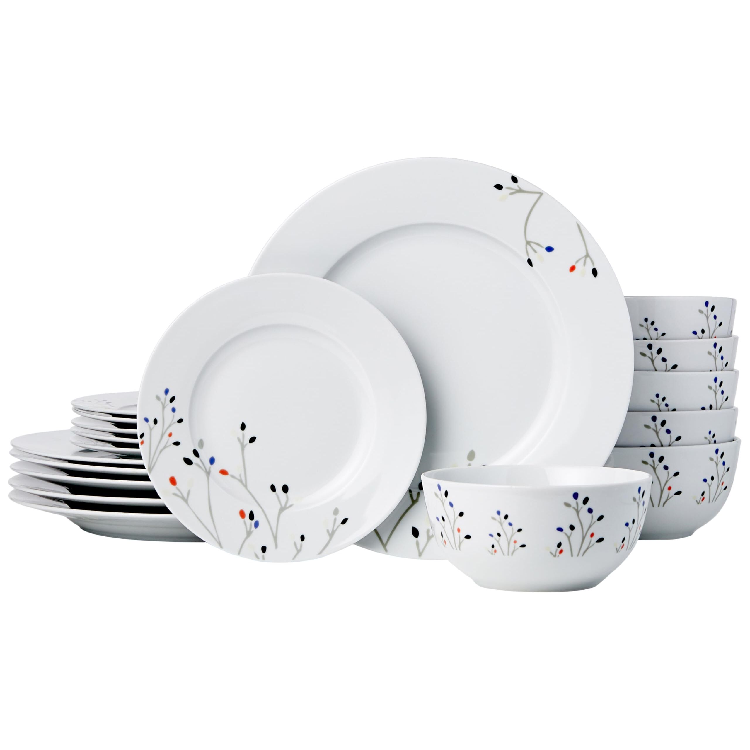 Amazon Basics Geschirrservice, 18 Stück, Zweige, für 6 Personen