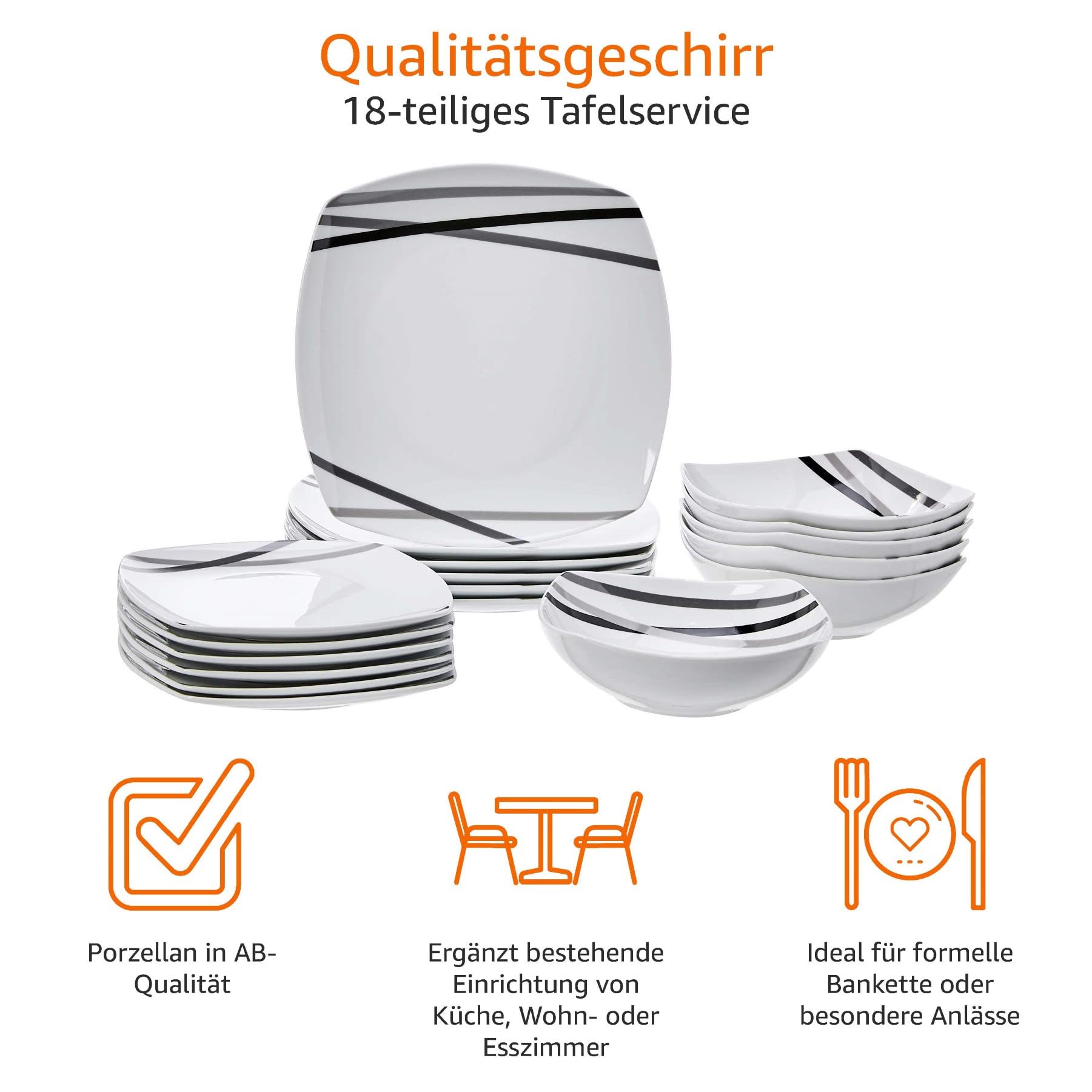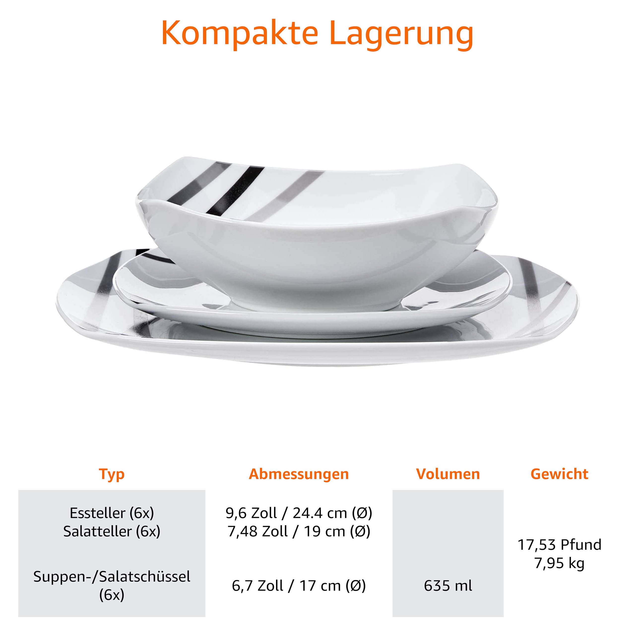 Amazon Basics Geschirrservice, 18 Stück, Moderne Strahlen, für 6 Personen