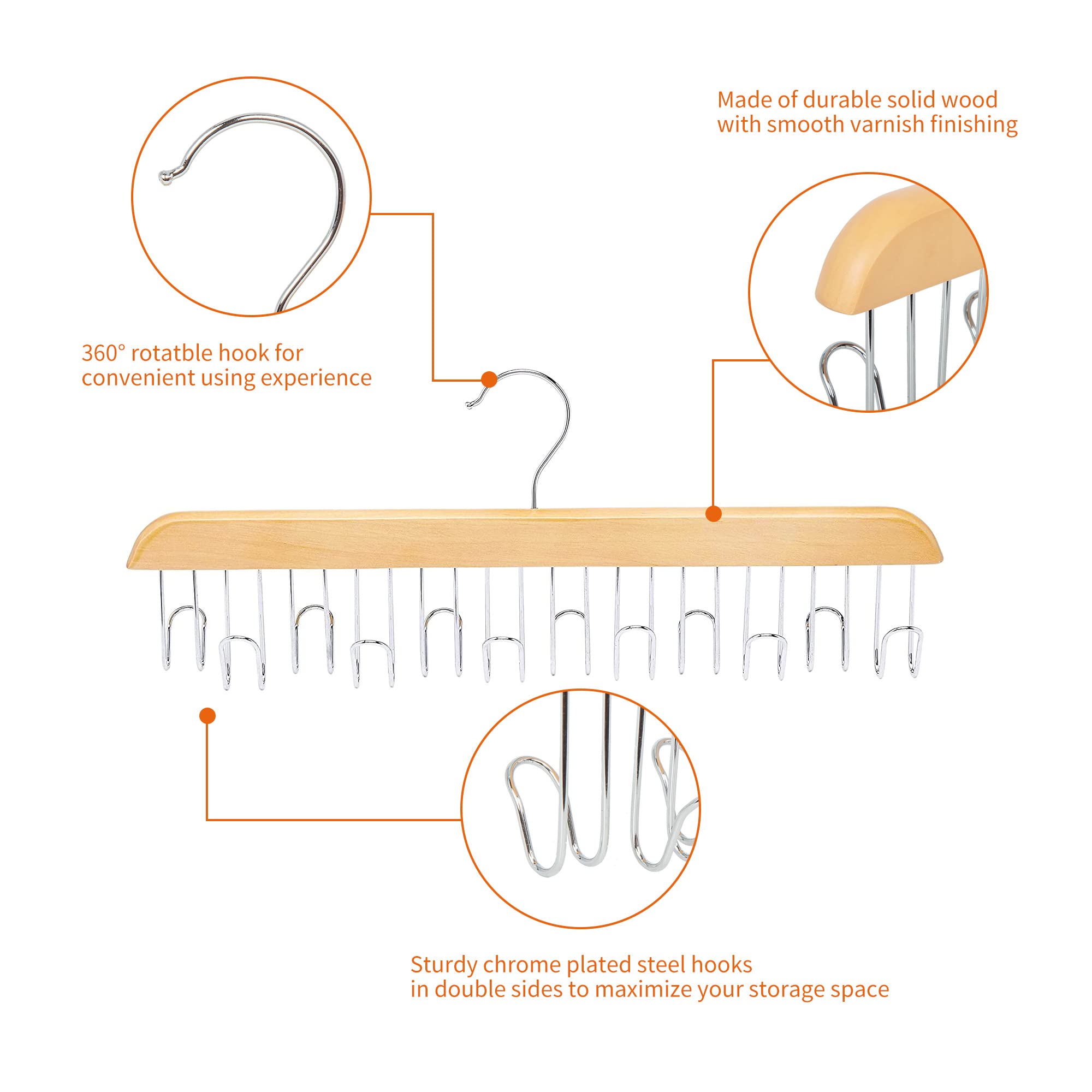 Amazon Basics Holz-Gürtelhalter, 2 Stück, 40x15.5 cm, Natürlich