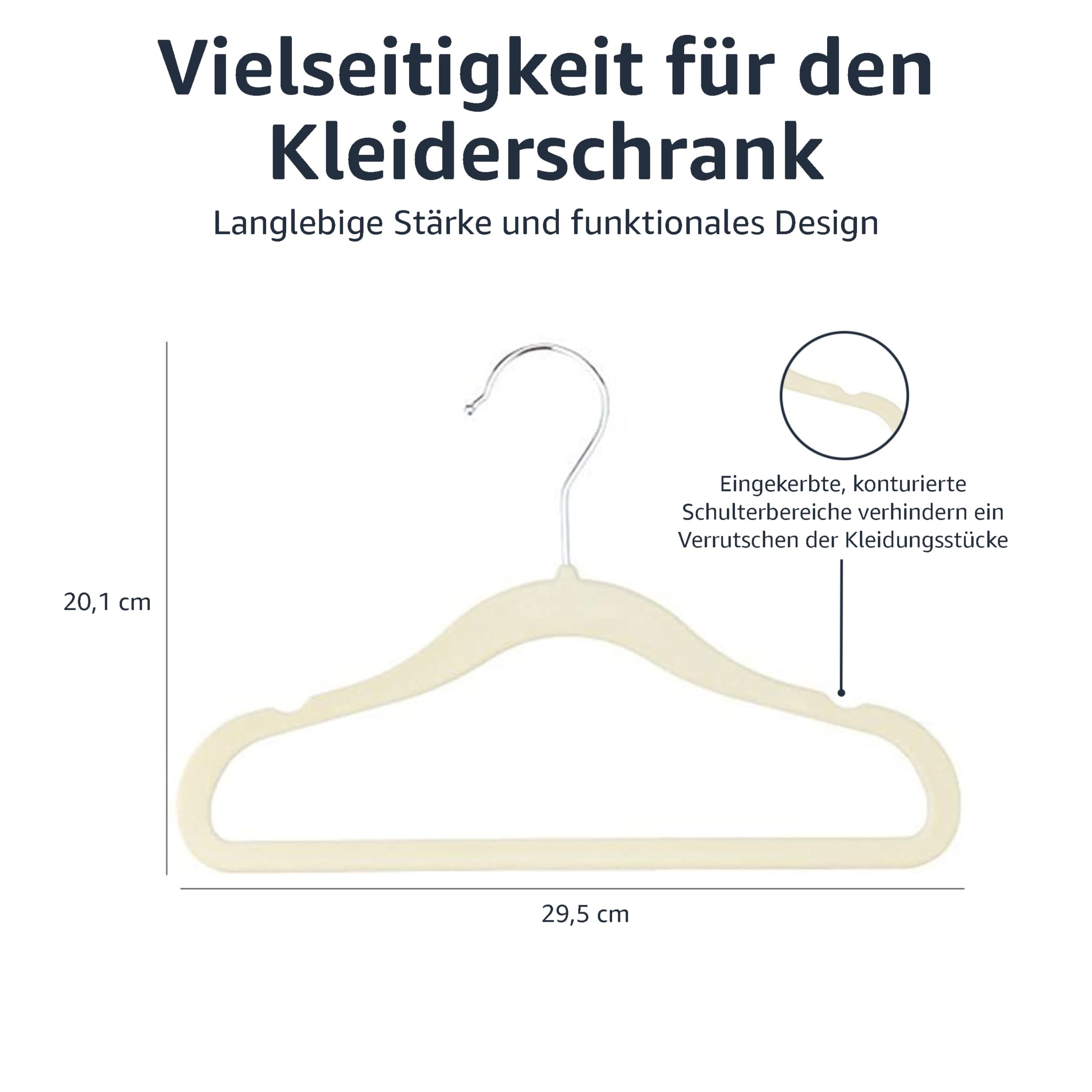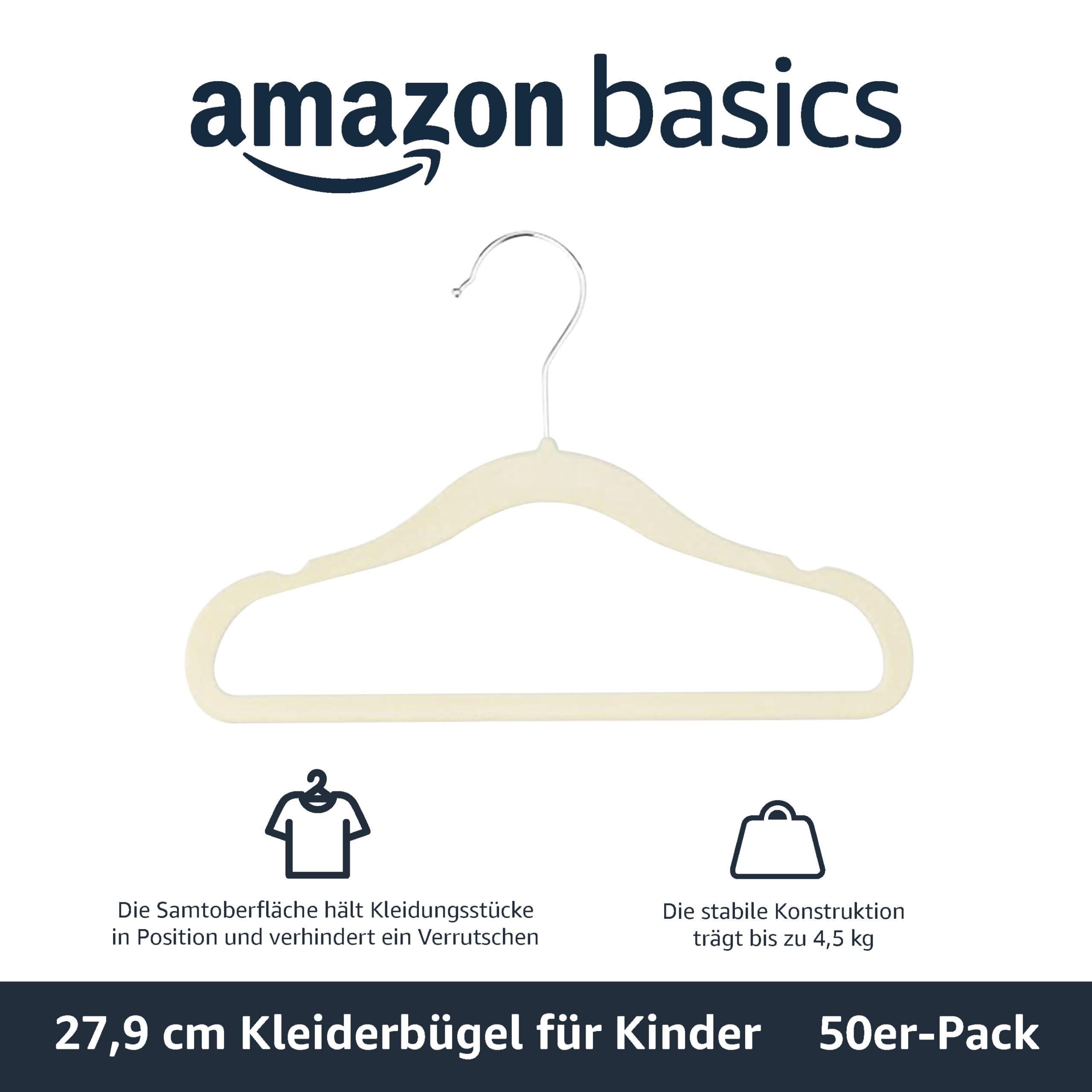 Amazon Basics Kinder-Kleiderbügel aus Samt, rutschfeste Kleiderbügel für Babys und Kleinkinder, 29 cm, 50er-Pack, Beige