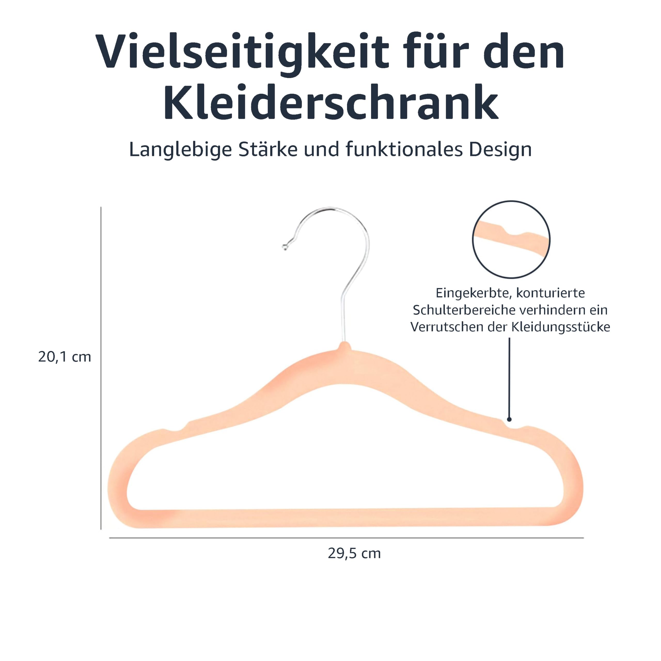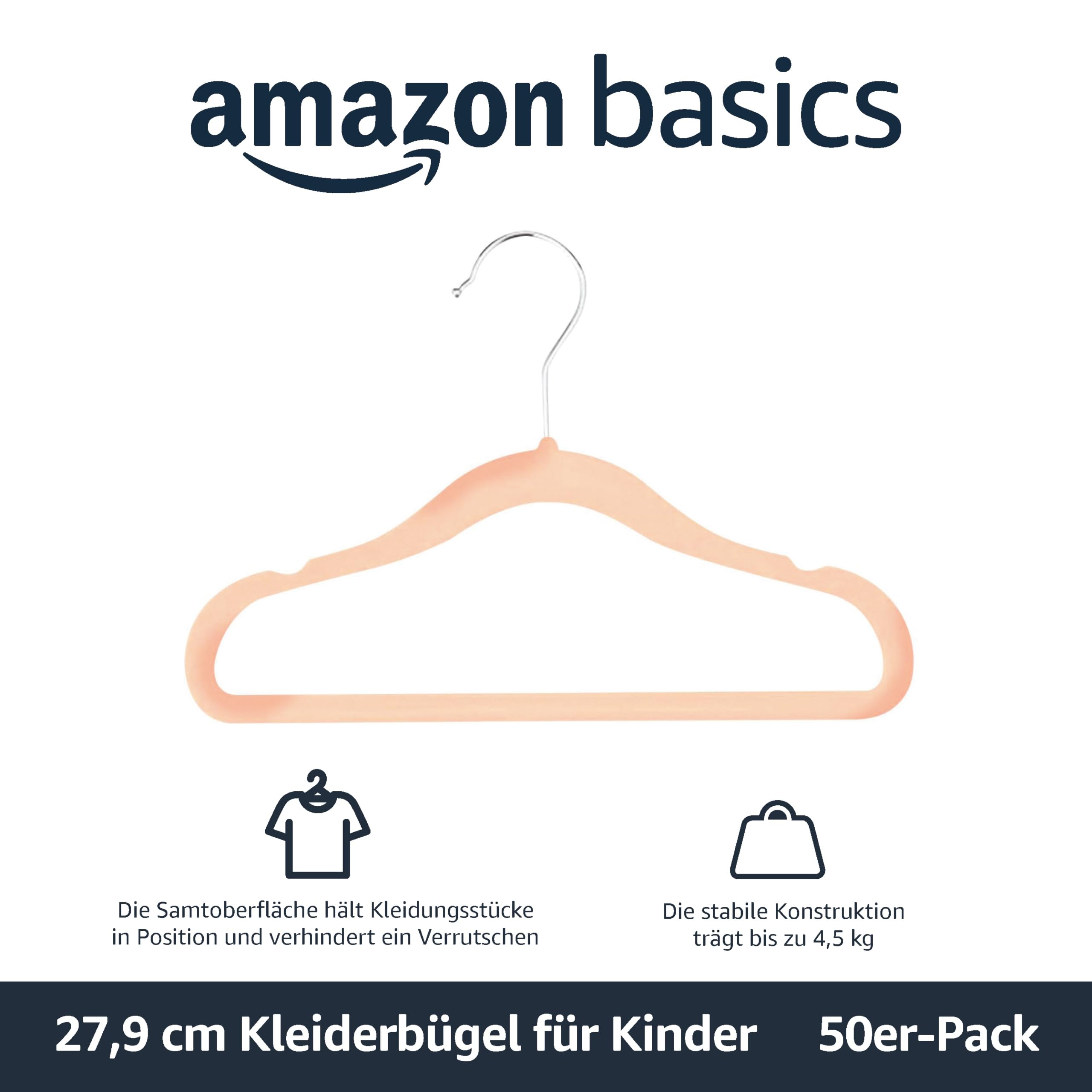 Amazon Basics Kinder-Kleiderbügel aus Samt, Rutschfest, für Säuglinge und Kleinkinder, 29,5cm (für Babykleidung), 50er-Pack, Rosarot