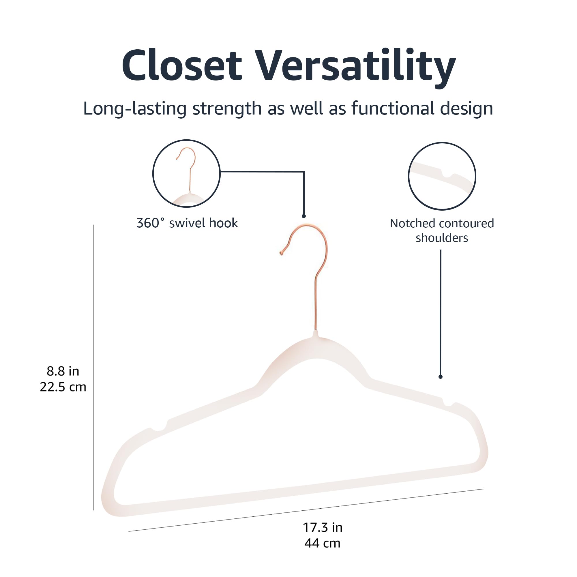 Amazon Basics Kleiderbügel für Anzüge, Samt, schmal, rutschfest, 50 Stück, Rosa (Blush), Gold