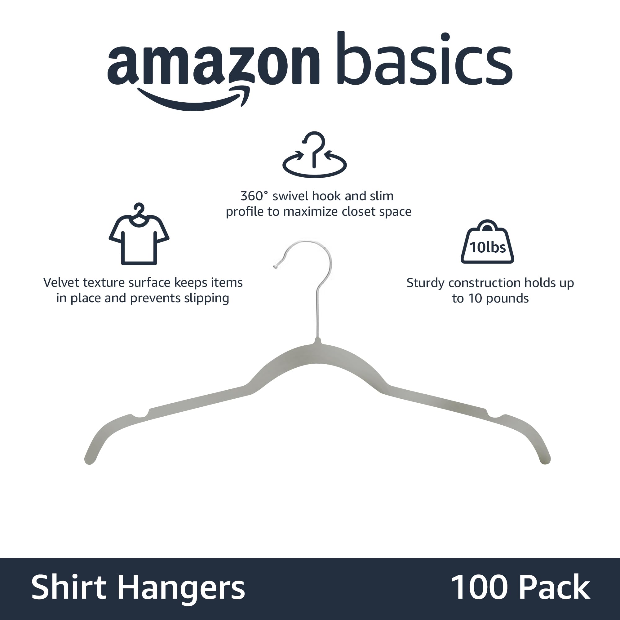 Amazon Basics Kleiderbügel für Hemd/Kleid, mit Samt überzogen, 100er-Pack, Grau