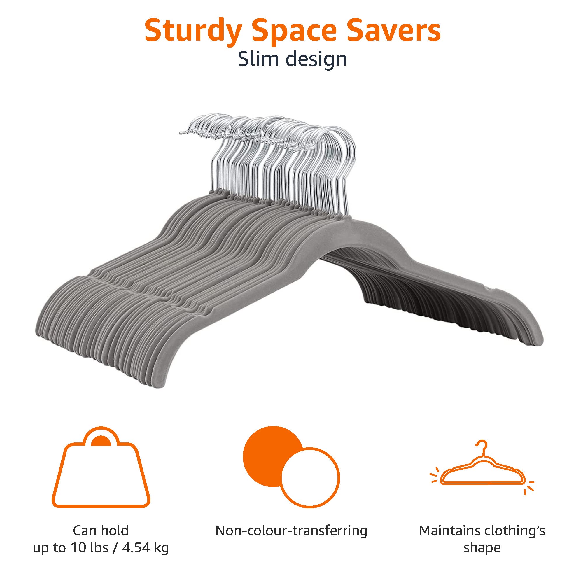 Amazon Basics Kleiderbügel für Hemd / Kleid, mit Samt überzogen 30er-Pack, Grau