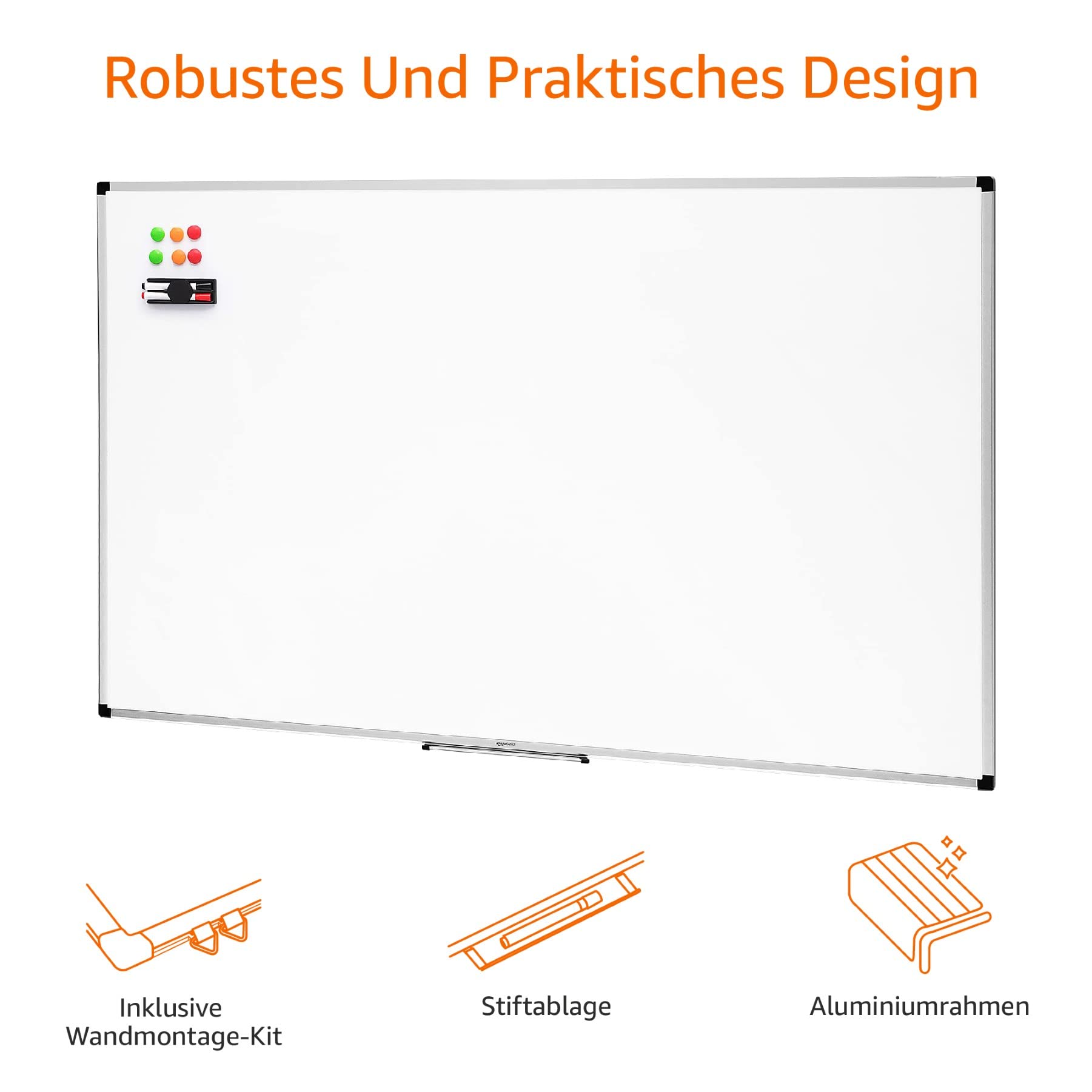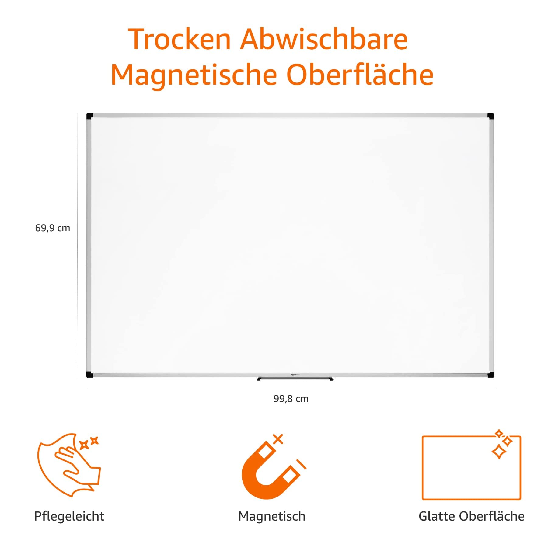 Amazon Basics Magnetisches Whiteboard mit Stifthalter Aluminiumrahmen trocken abwischbarer Schreibfläche 90cm x 60cm (BxH) inklusive 6 Magneten 1 Tafelwischer und 2 trocken abwischbaren Markern Weiss