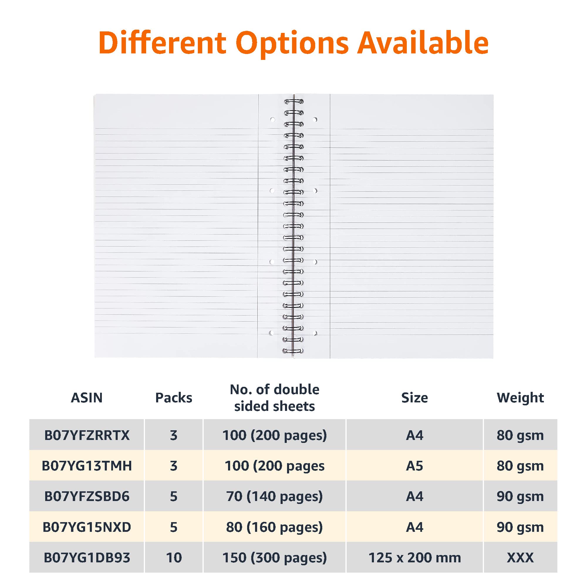 Amazon Basics Notizbuch mit Drahtbindung, 100 Blatt/200 Seiten A4+, 80 GSM, 3 Stück, Red