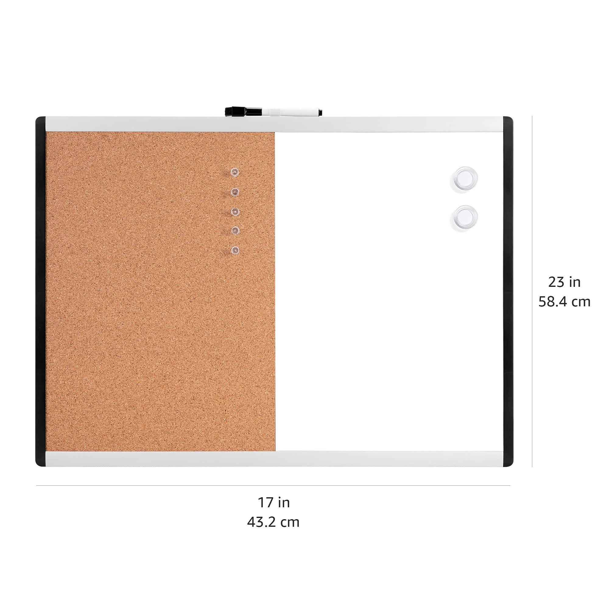 Amazon Basics Magnetische, trocken abwischbare Tafel, Kombi-Tafel, Kunststoff-/Aluminiumrahmen, 43,2 x 58,4 cm